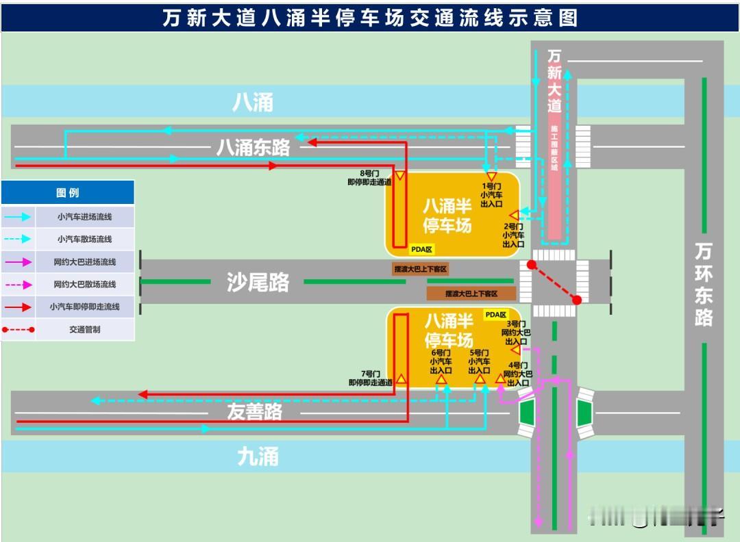 持票观众可以乘坐接驳大巴前往,而打网约车、自驾的观众,可以停在万新大道八涌半停车场再乘坐摆渡车前往。
