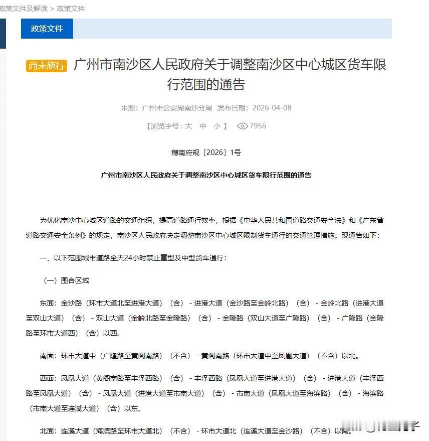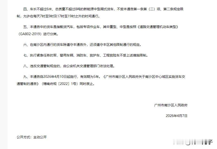 大货车全新限行路段和时段,4月10日开始实行,南沙城区多个小区可以睡个安静觉了!