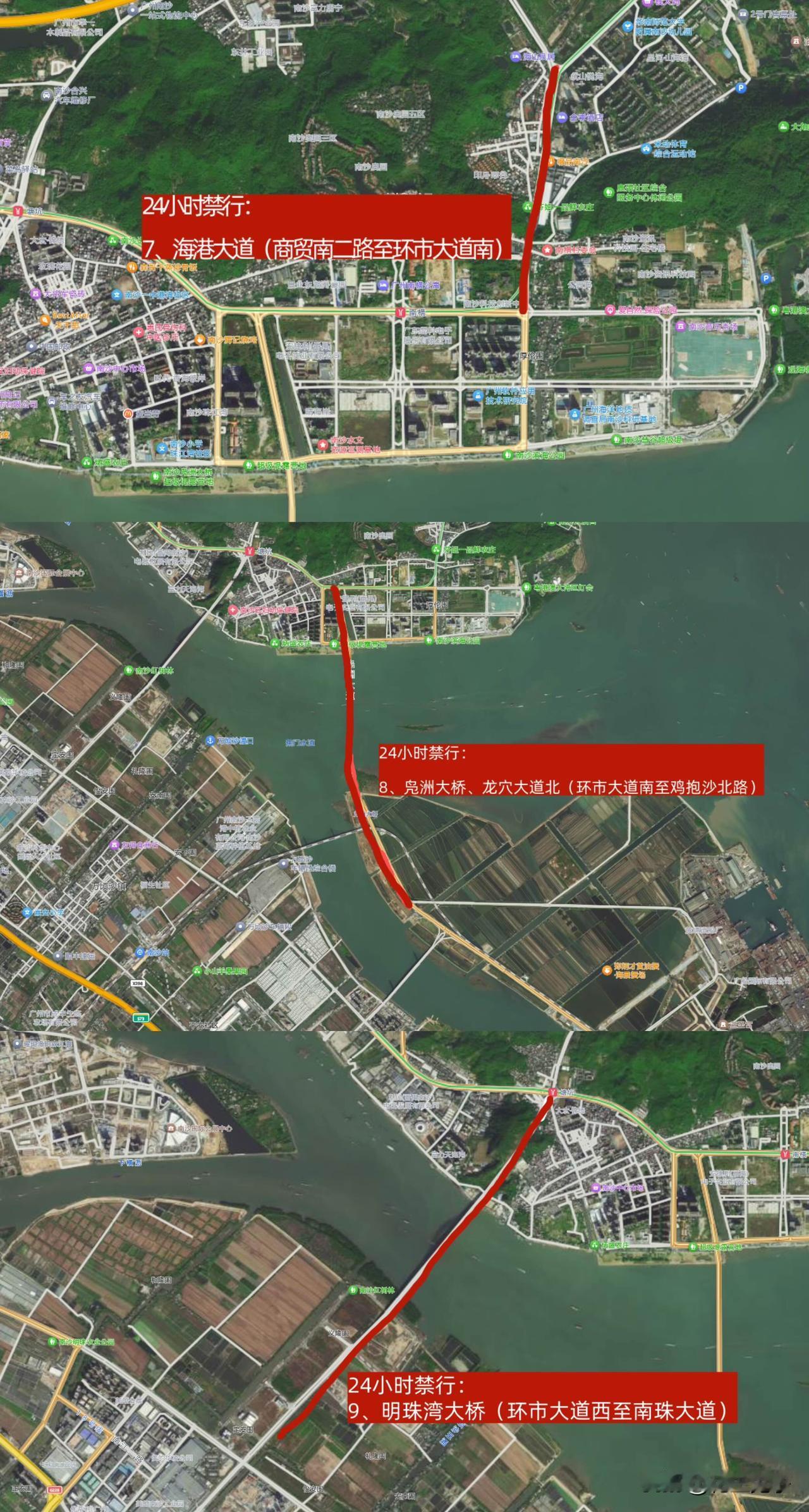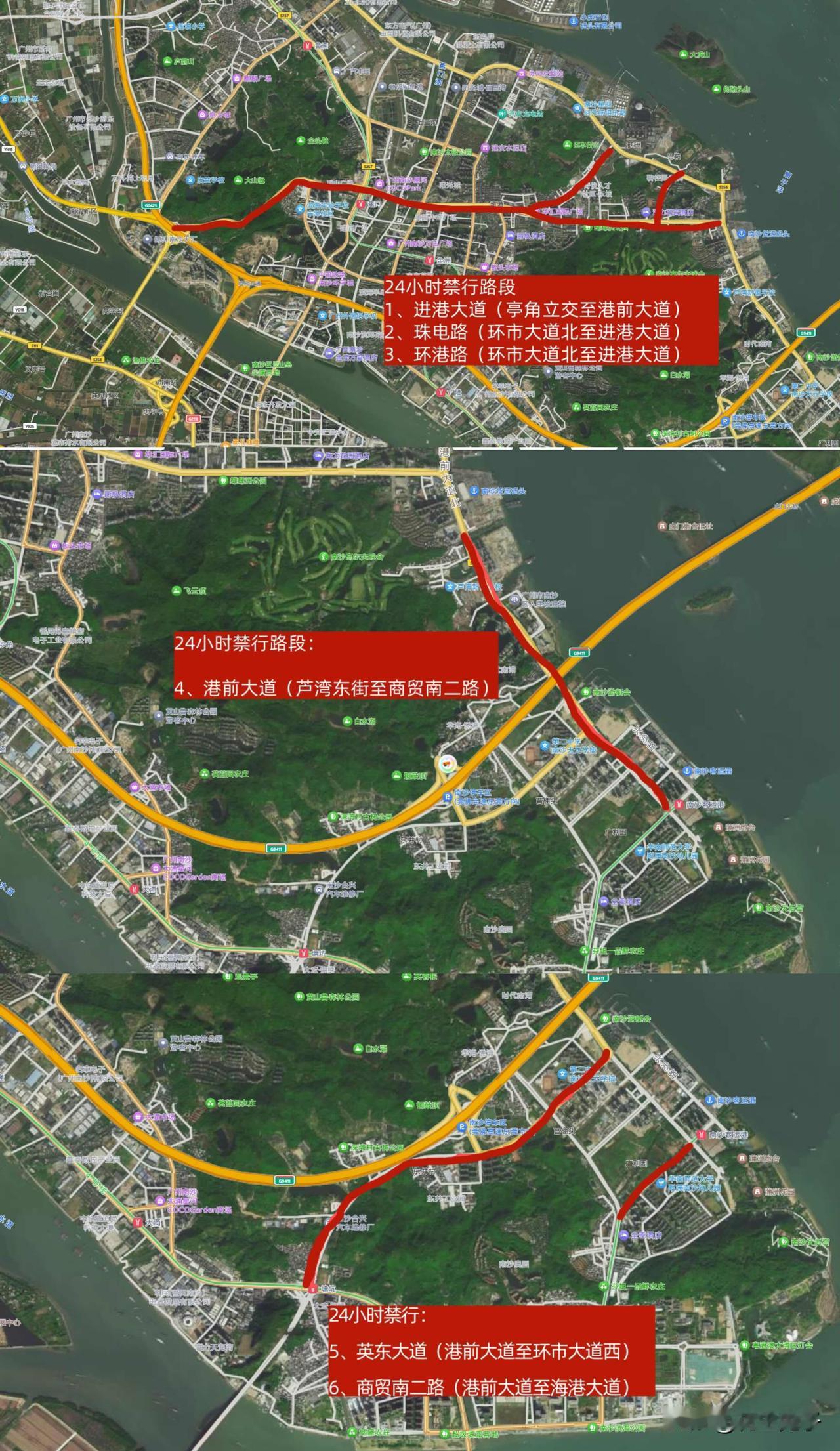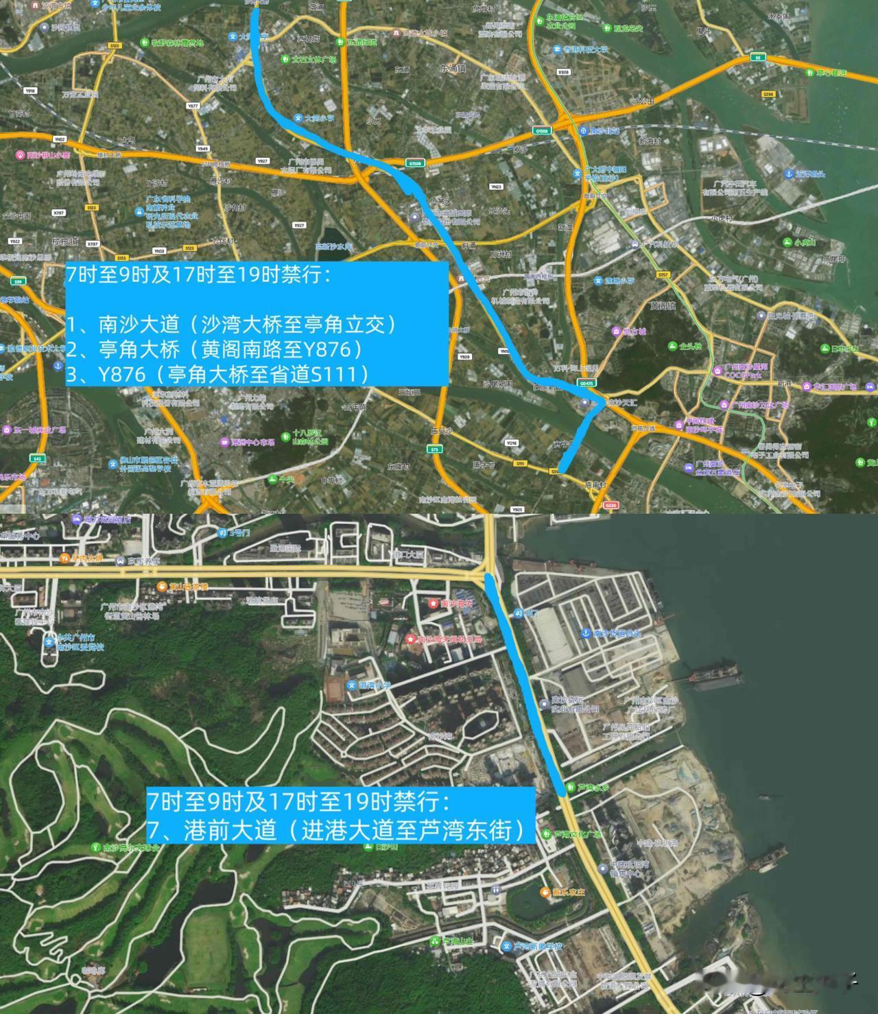 南沙大道、亭角大桥、y876、港前大道。