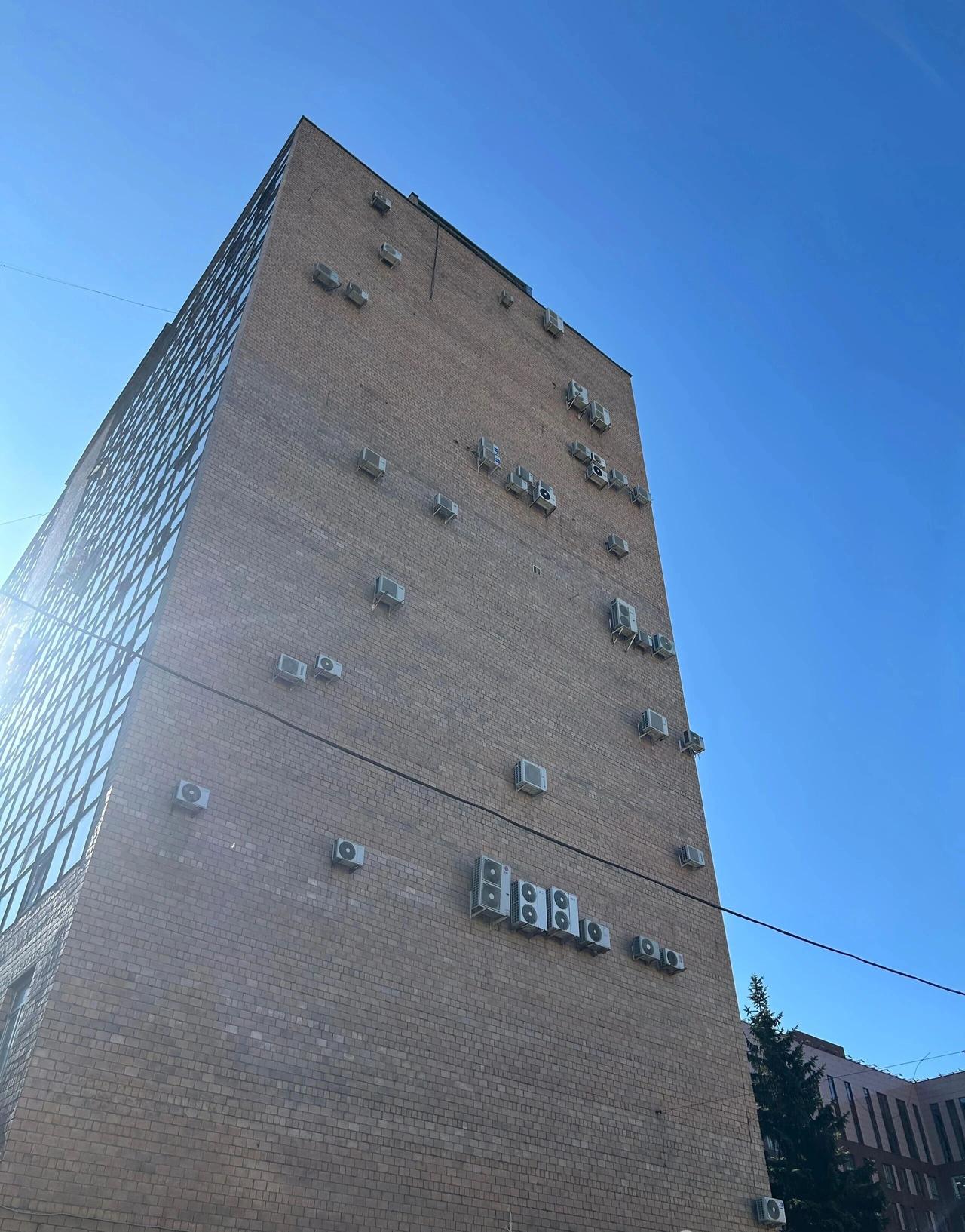 空调外机这么装,哪个天才想出来的 好奇怎么装上去的,居然没有一个支架,也没有一根