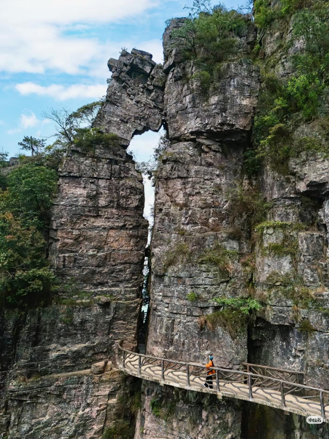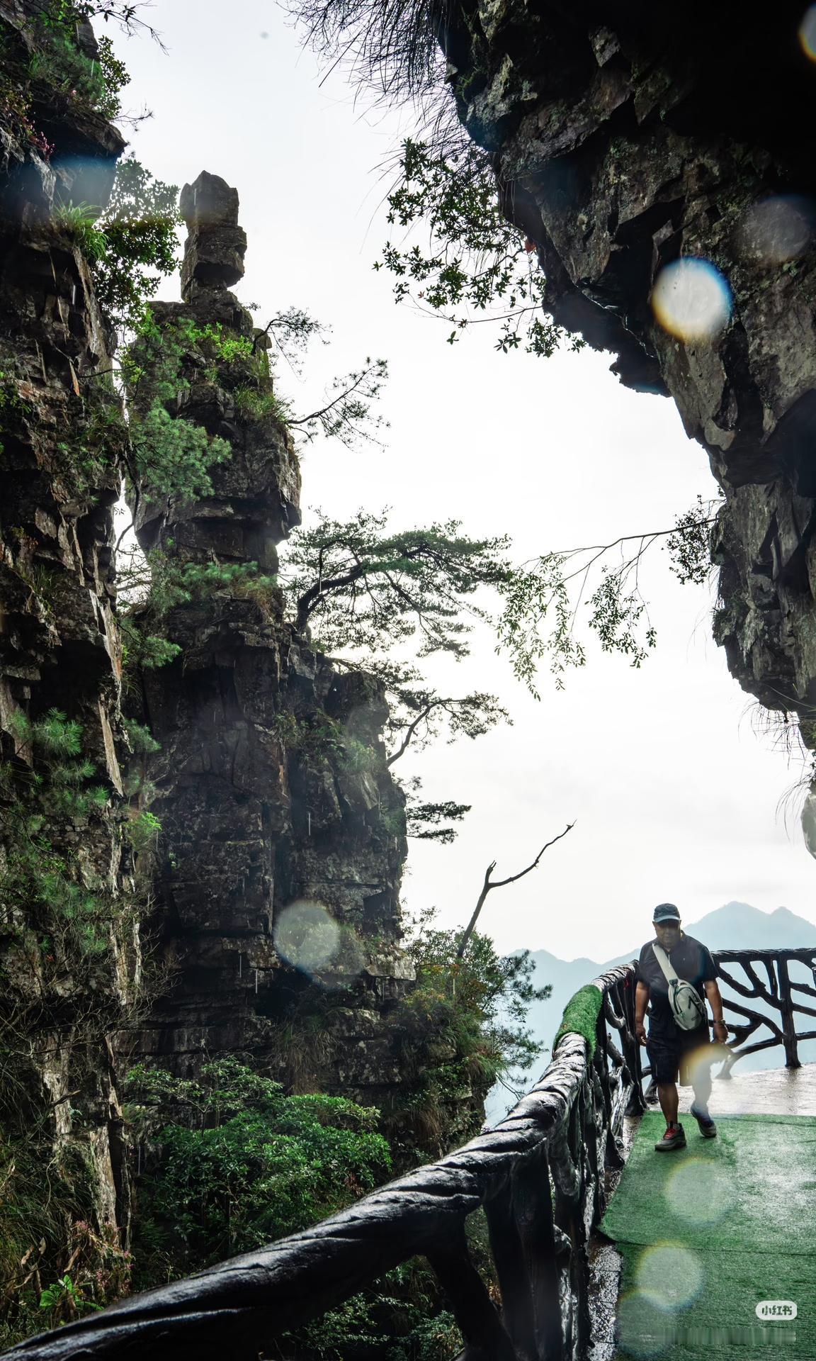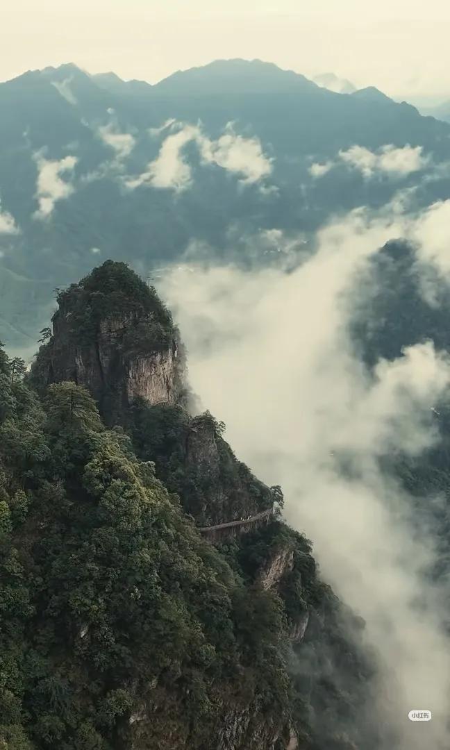 奇峰成林,云雾缭绕,走在栈道上就像误入仙境