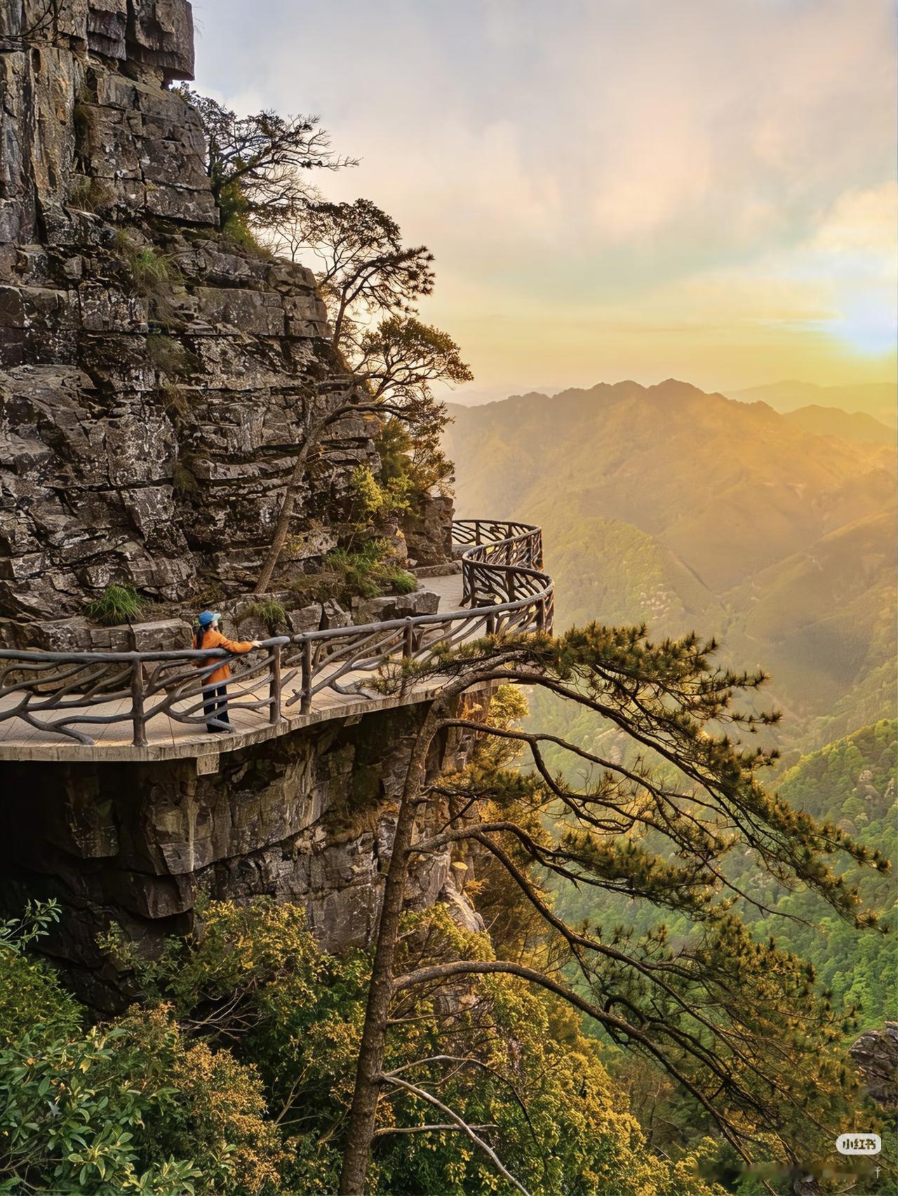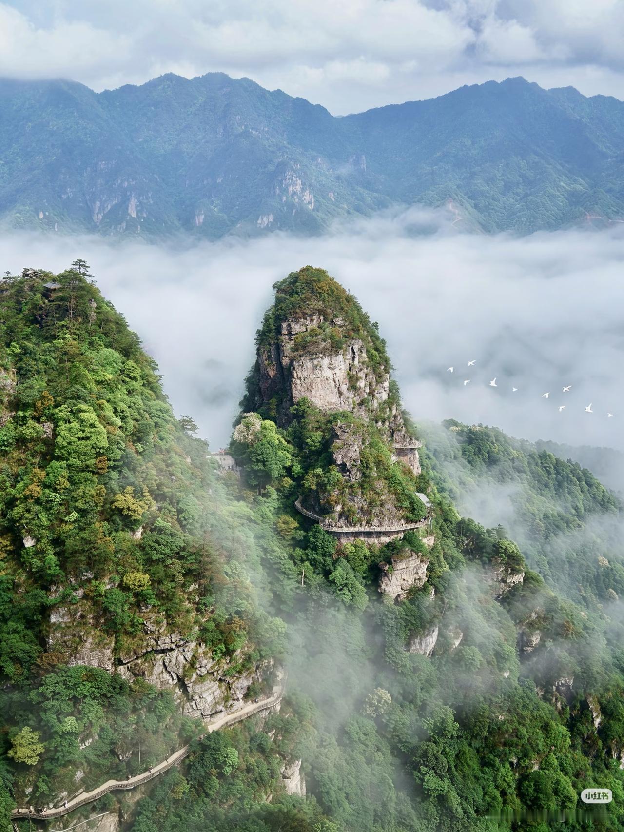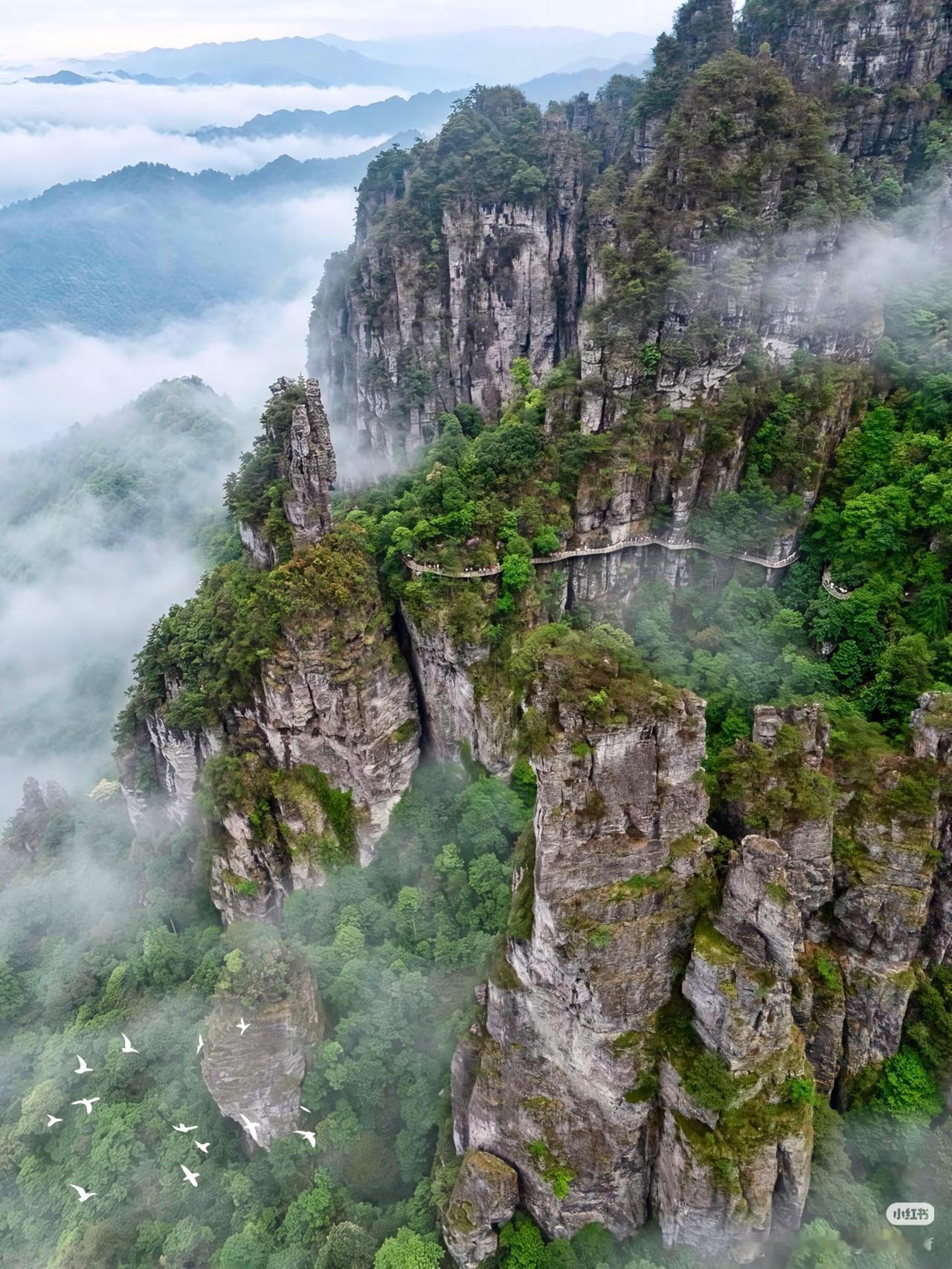 奇峰成林,云雾缭绕,走在栈道上就像误入仙境