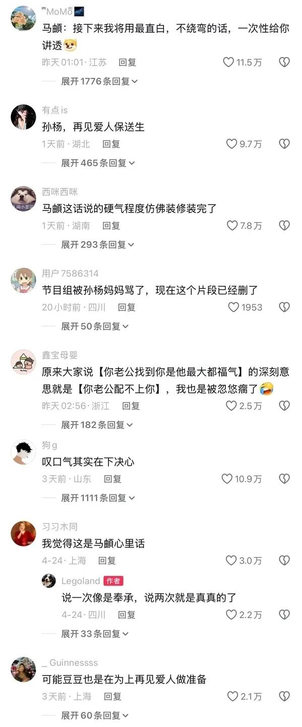 看评论区,有网友爆料,这段视频播出之后,节目组就被孙杨的妈妈骂了,然后现在这个片段已经被删掉了。