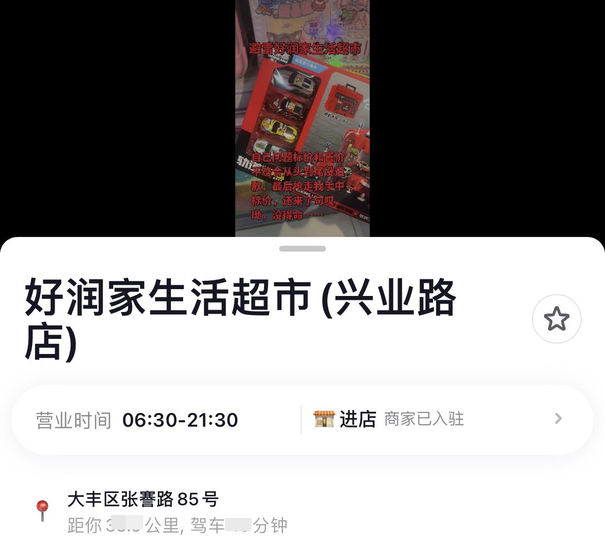 网友吐槽:避雷大丰好*家·生活超市,标牌价和实际付款价不一样也就算了,里面服务态度吓死人,自己商标18.8,扫码出来35.9,这是今天就买了这一个发现价格不一样的,指不定里面多少东西,标牌一个价,商品扫出来付款一个价。