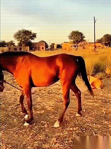 雄狮扑上去那刻,马儿没惊慌,反而猛地一沉,前蹄高高扬起!