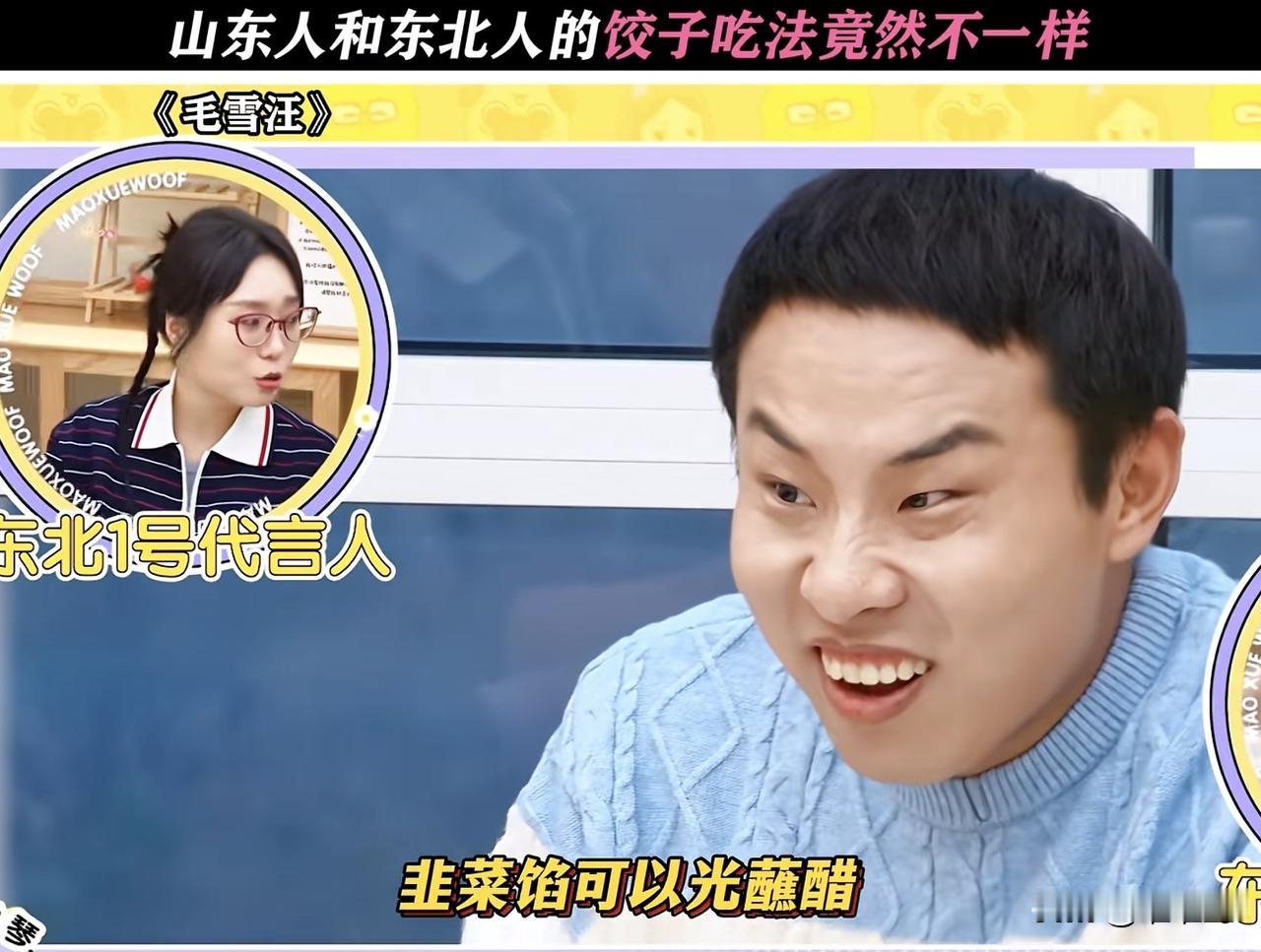 东北人二号李雪琴也说:“韭菜馅可以光蘸醋,但……”徐志胜不服气,马上打断道:“我们所有的馅,我都没有蘸过酱油。”