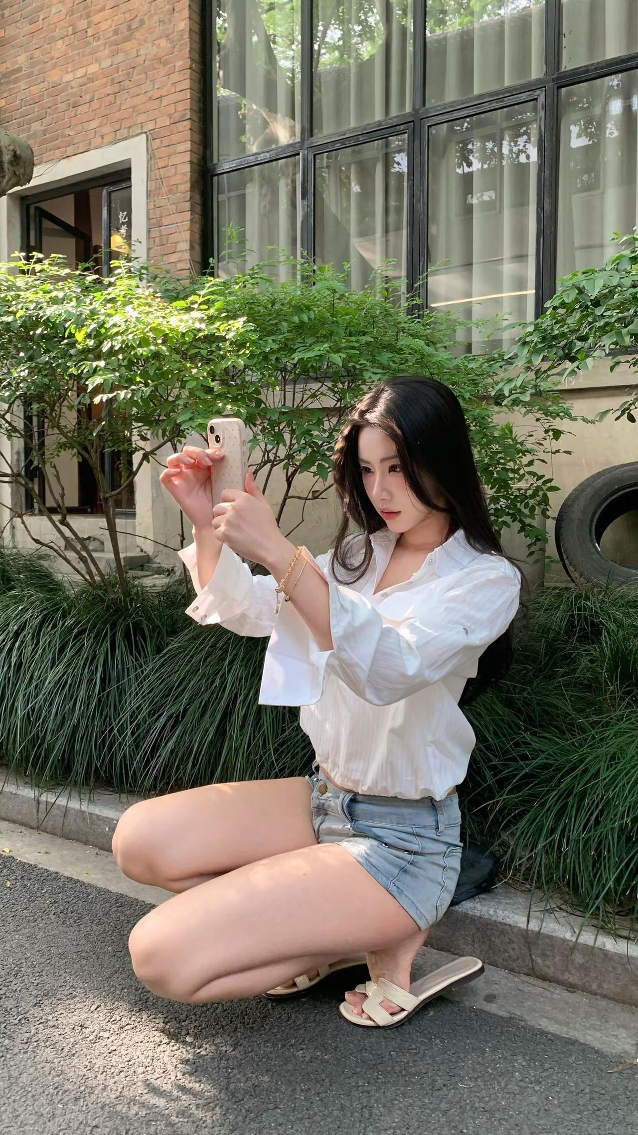 夏日穿搭指南:牛仔短裤+V领针织衫,轻松出街!🌞👗👖穿搭