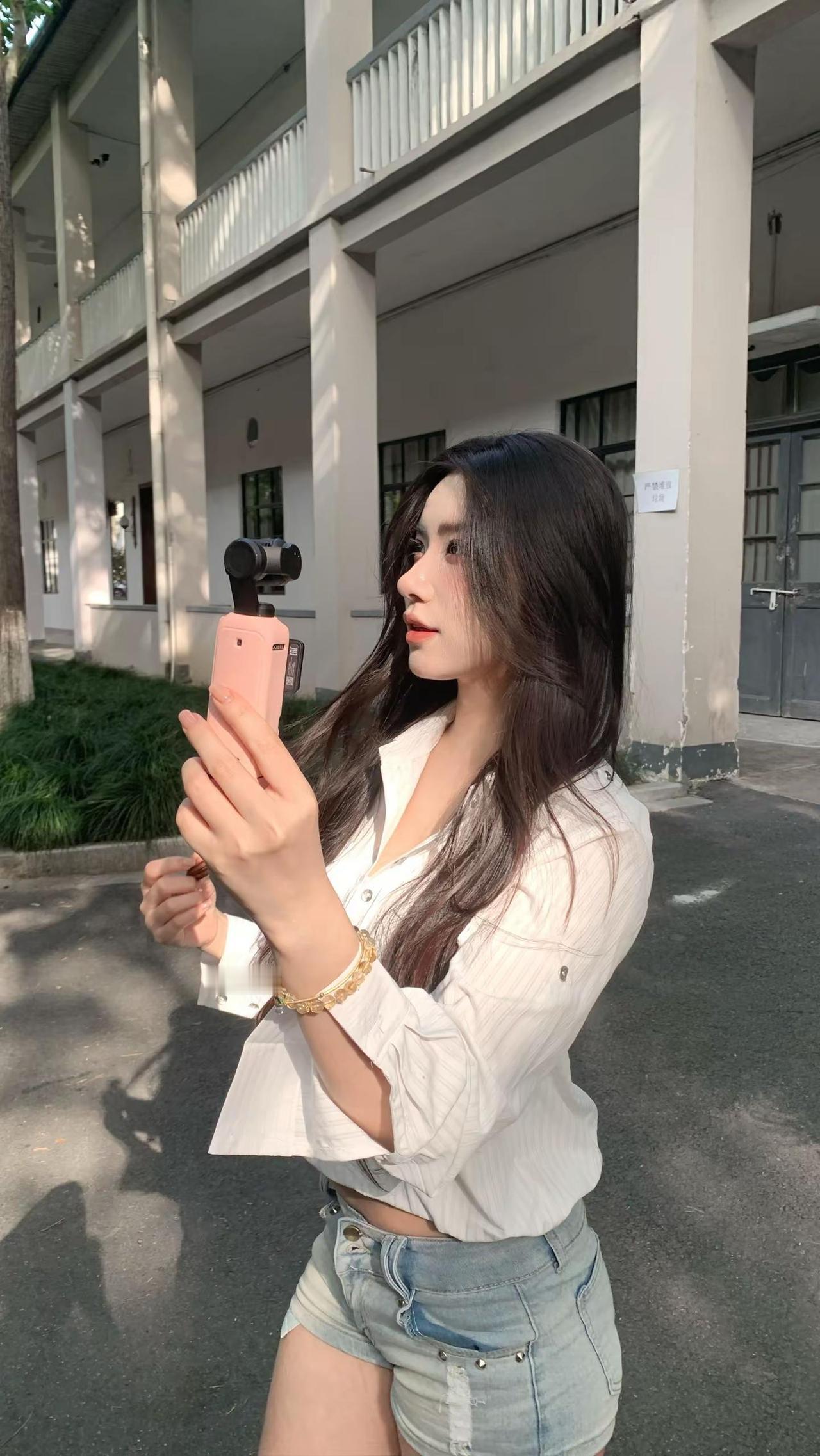 都市街头时尚少女,黑衣短裤,手拿小包,轻松自在。分享随手拍下的花朵晒晒你拍的那