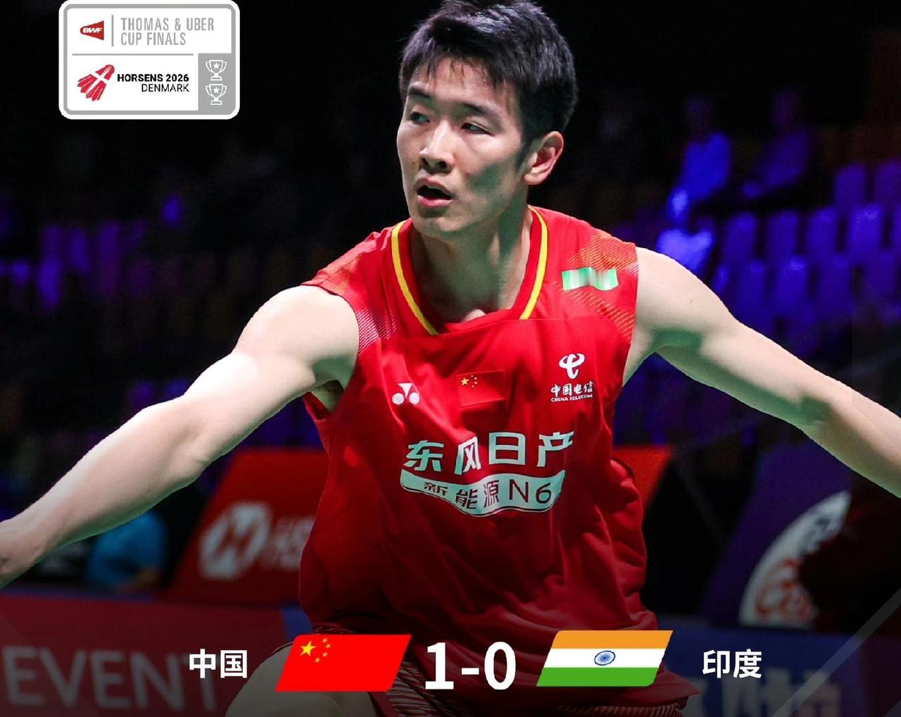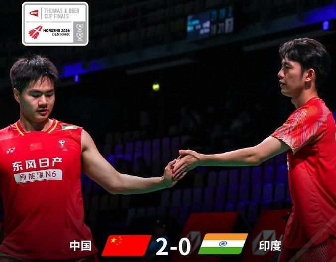 2026汤姆斯杯小组赛(A组)第一名争夺战快讯: 中国对印度,已经结束前二场比赛