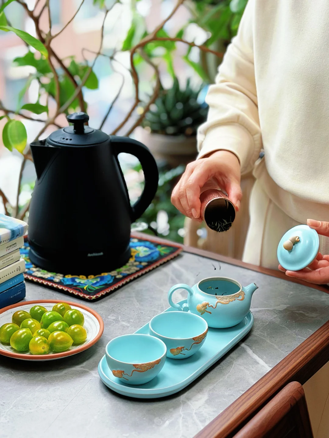 侍弄好几盆绿植,是每日清晨的仪式感。然后喜欢烧一壶热水,泡一杯淡茶,几颗清甜的小番茄,一本闲书,不用追赶时间,只静静坐着,放空、发呆、慢下来,于我而言,快乐就是宅在这个植物角,拥有属于自己的半日清闲慢煮生活,与温柔撞个满怀。