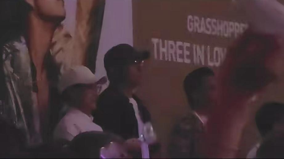旁边的年轻人没有一个看他们的,都在拿着手机拍台上的草蜢,仿佛不认识他们似的。