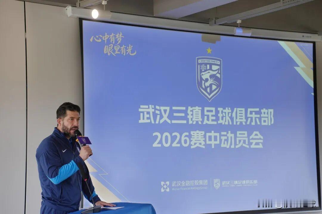 4月29日,武汉三镇召开赛中动员会,俱乐部管理团队、主教练莫拉、金控高层分别发表讲话。这次赛中动员会是俱乐部历史首次,核心释放四大信号:正视危机、统一思想、压实责任、全力保级。