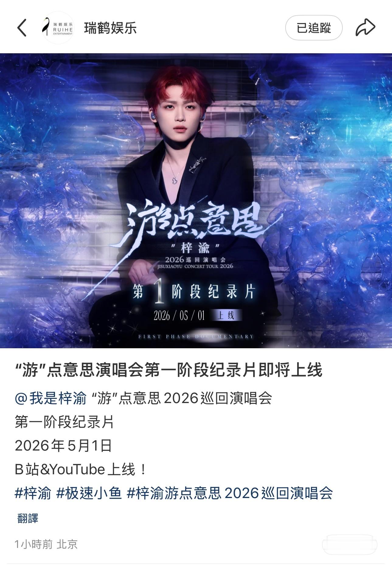 梓渝「游点意思」演唱会纪录片5月1日上线,厦门文旅:期待梓渝厦门纪录片。