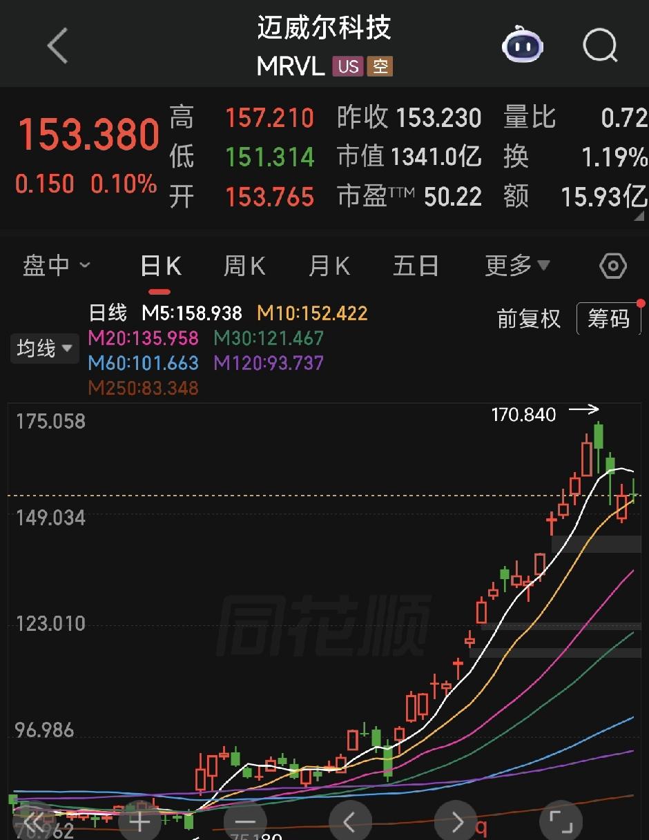 美股MXL,核心产品DSP芯片0-1出货,4天翻倍。此时lumentum、闪迪等开始回落而MXL还在向上。