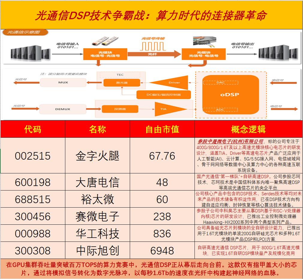 裕太微:Marvell曾在2023年解散了其中国研发部门,其中相当一部分成熟的研发人员随后加入了裕太微。在光模块DSP技术方向构建了自适应均衡、时钟恢复等核心算法技术储备;4月28日公告募资13.6亿加速数据中心DSP芯片研发。