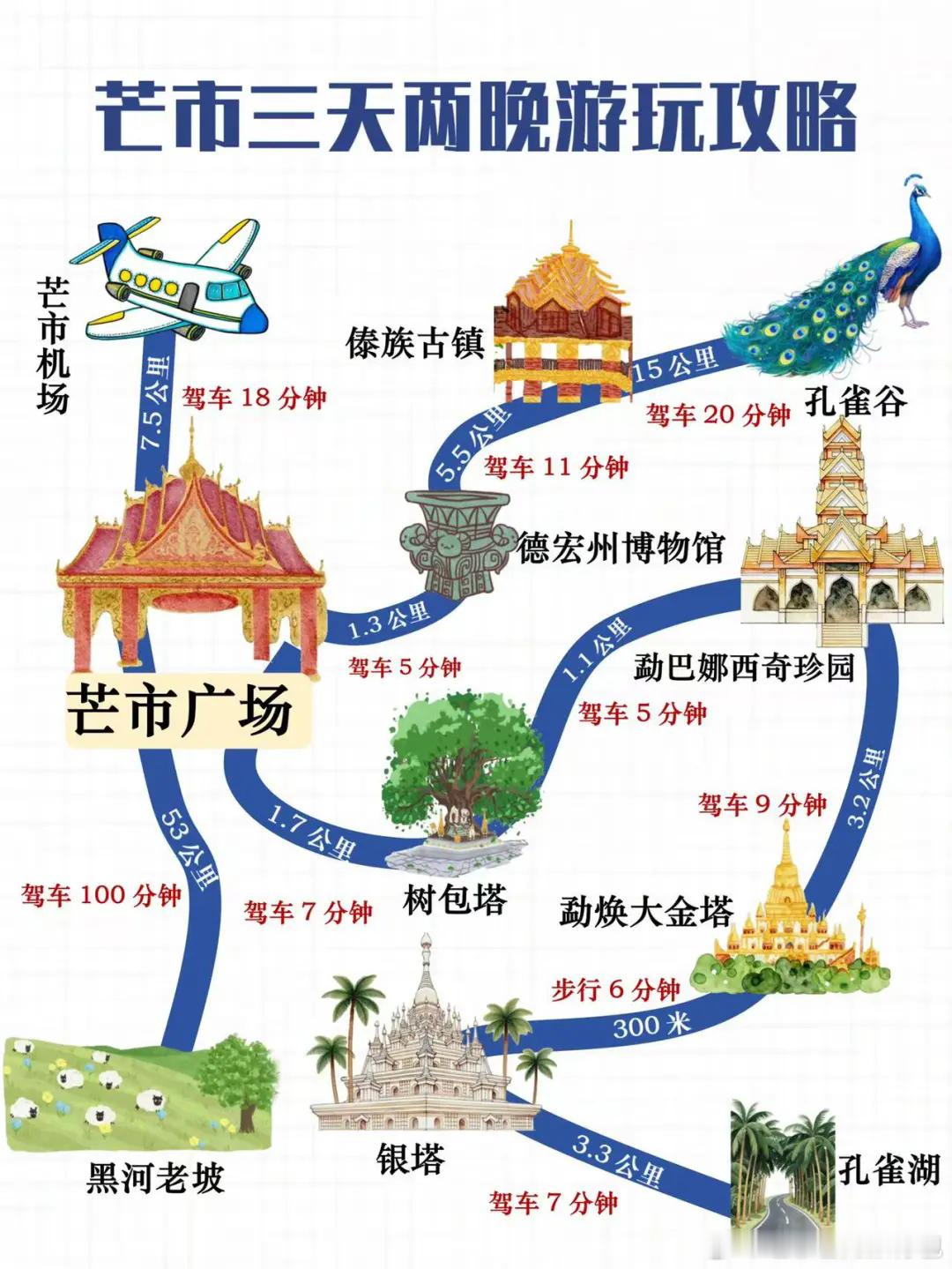 五一反向游封神!云南芒市这颗美食炸弹,冷门好吃还不挤热门景区人挤人、排队 3 小时吃贵价饭?懂行的早就冲这些冷门小城了!云南芒市必须 C 位出道 —— 边陲小城藏着地道傣味,花小钱吃撑,节奏慢到骨子里,五一反向游选它准没错~📍云南・芒市云南边陲的宝藏小城,没有大理丽江的拥挤,只有酸酸辣辣的傣味和慢悠悠的时光。泡鲁达椰香浓郁,面包干泡软吸满椰汁,一口上头;手抓饭端上来就是一大簸箕,烤鱼、烤肉配三色米饭,抓着吃才够过瘾!撒撇、过手米线、傣味烧烤…… 随便钻进巷子里的本地小店,都是排队王级别的美味,花钱少还吃得爽。除了吃,勐焕大金塔的金辉、勐焕大银塔的圣洁、树包塔的奇观,随手拍都是异域感大片。傍晚去傣族古镇夜市逛吃,吹着晚风撸串,别人在热门景区挤破头,你在芒市实现 “美食自由 + 清净自由”,这种快乐谁懂啊!✅3 日游路线D1:勐焕大金塔→勐焕大银塔→树包塔→傣族古镇夜市D2:芒市广场→三棵树风情街→菩提寺→珠宝小镇D3:孔雀湖→芒市大河→五棵树村寨→百思特美食城✅预计花费:900-1400 元五一想躲开人潮、专心干饭?芒市这颗 “美食遗珠”,去过的人都想二刷!五一旅游就这样发朋友圈 五一美食打卡 一起过五一