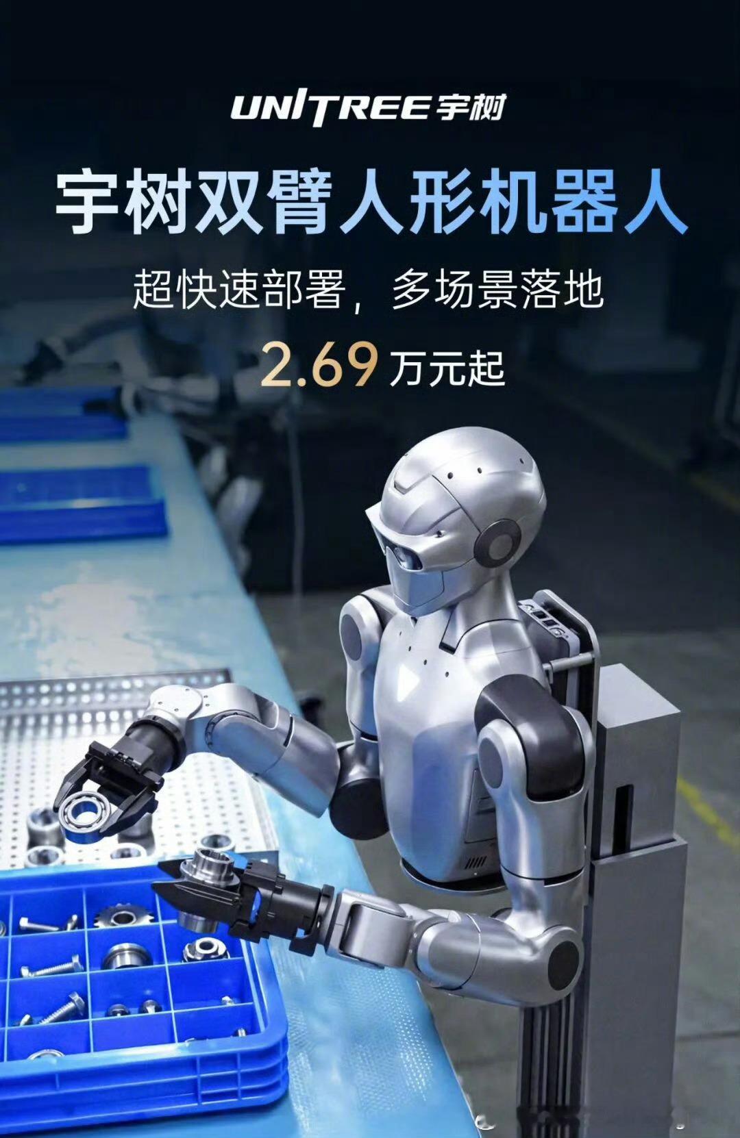 【宇树双臂人形机器人发布:2.69万元起】宇树全新双臂人形机器人正式亮相,以上半