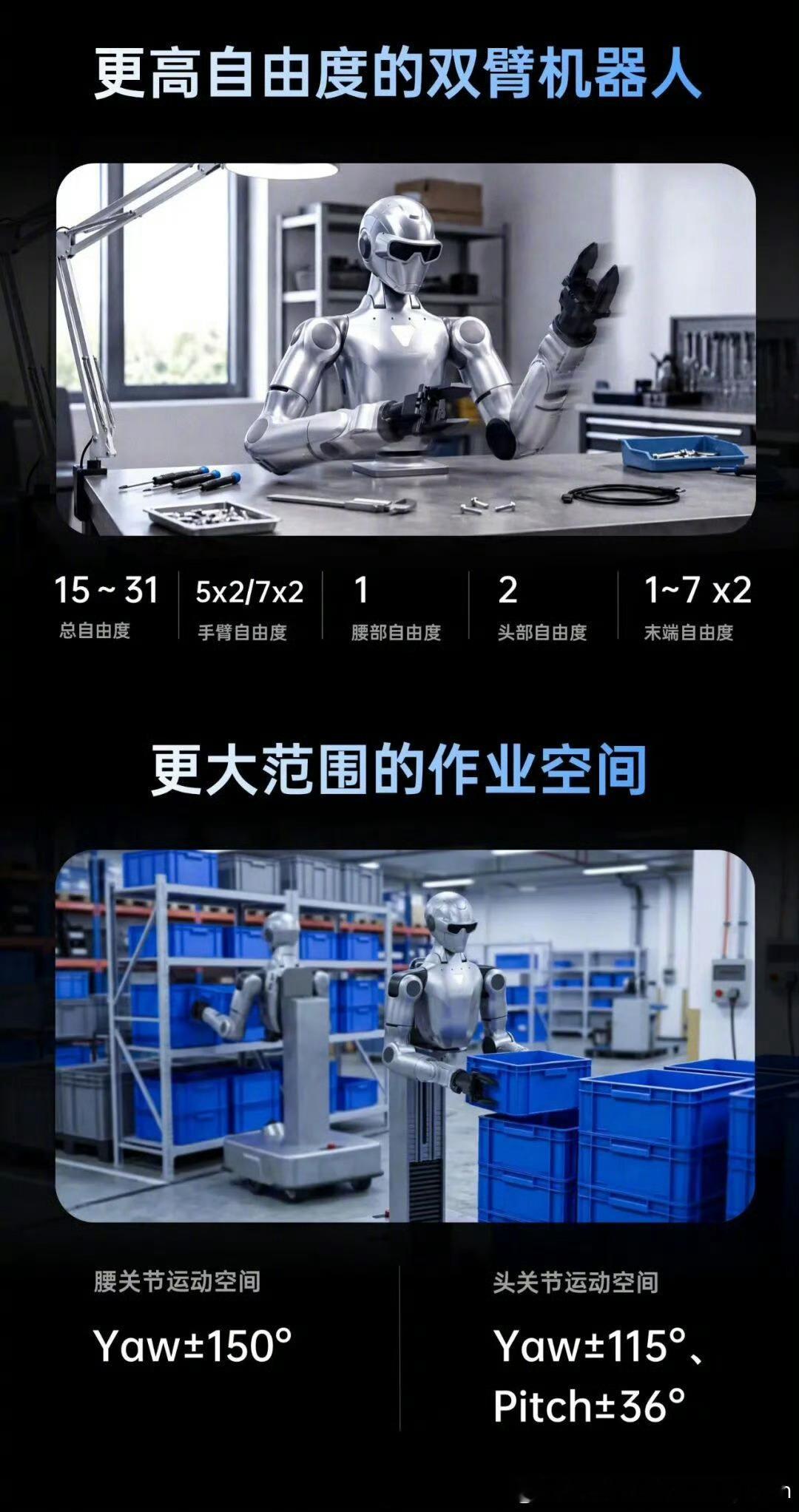 【宇树双臂人形机器人发布:2.69万元起】宇树全新双臂人形机器人正式亮相,以上半身双臂作业为核心能力,搭载双目视觉算力模组,整机自由度覆盖15至31档,双臂可按需选配5×2或7×2两种自由度方案。(IT之家)