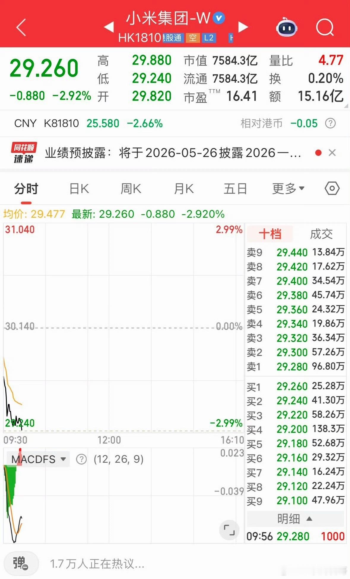 百思不得其解,小米玄戒O1突破100万台了,玄戒O3也在铺天盖地预热了,按理来说小米市值应该会飙升才对,但这个节骨眼上却是下滑了,这是怎么回事?怎么这么奇怪?