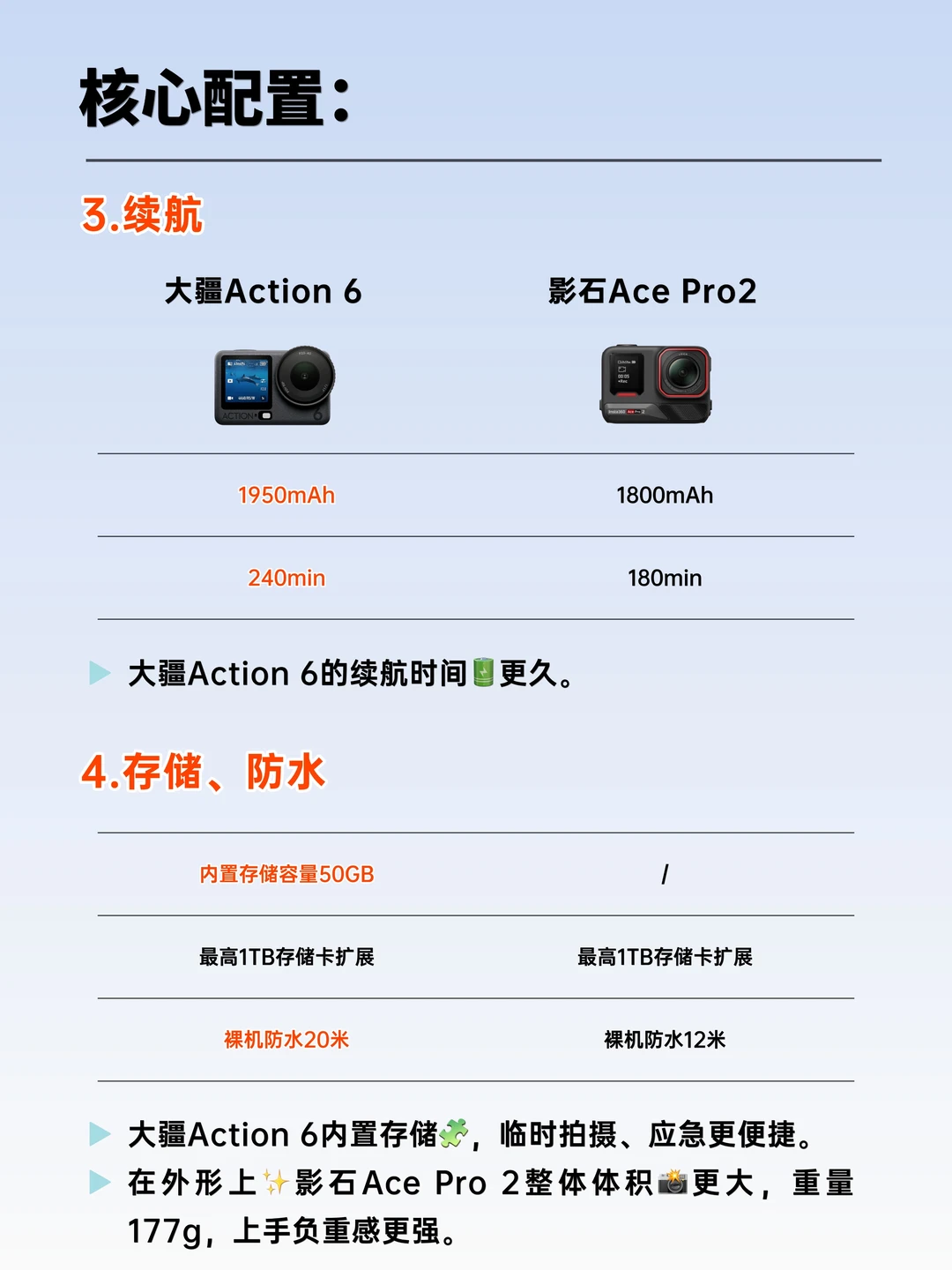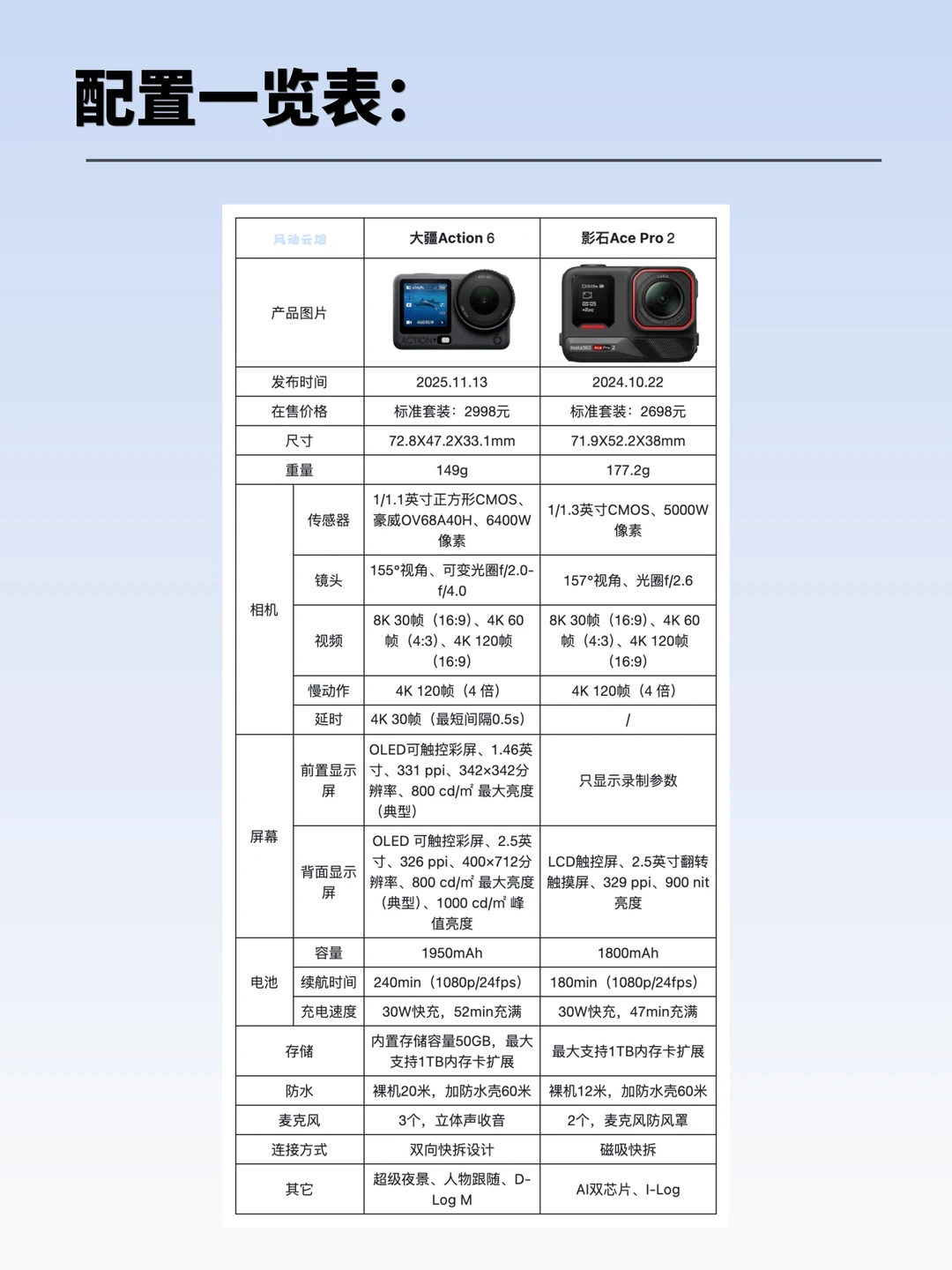 今天我将从画质、屏幕、续航、存储、防水等核心配置✅,对这两款机型进行💥全方位对比,帮你快速理清需求,选到真正适合自己的运动相机。