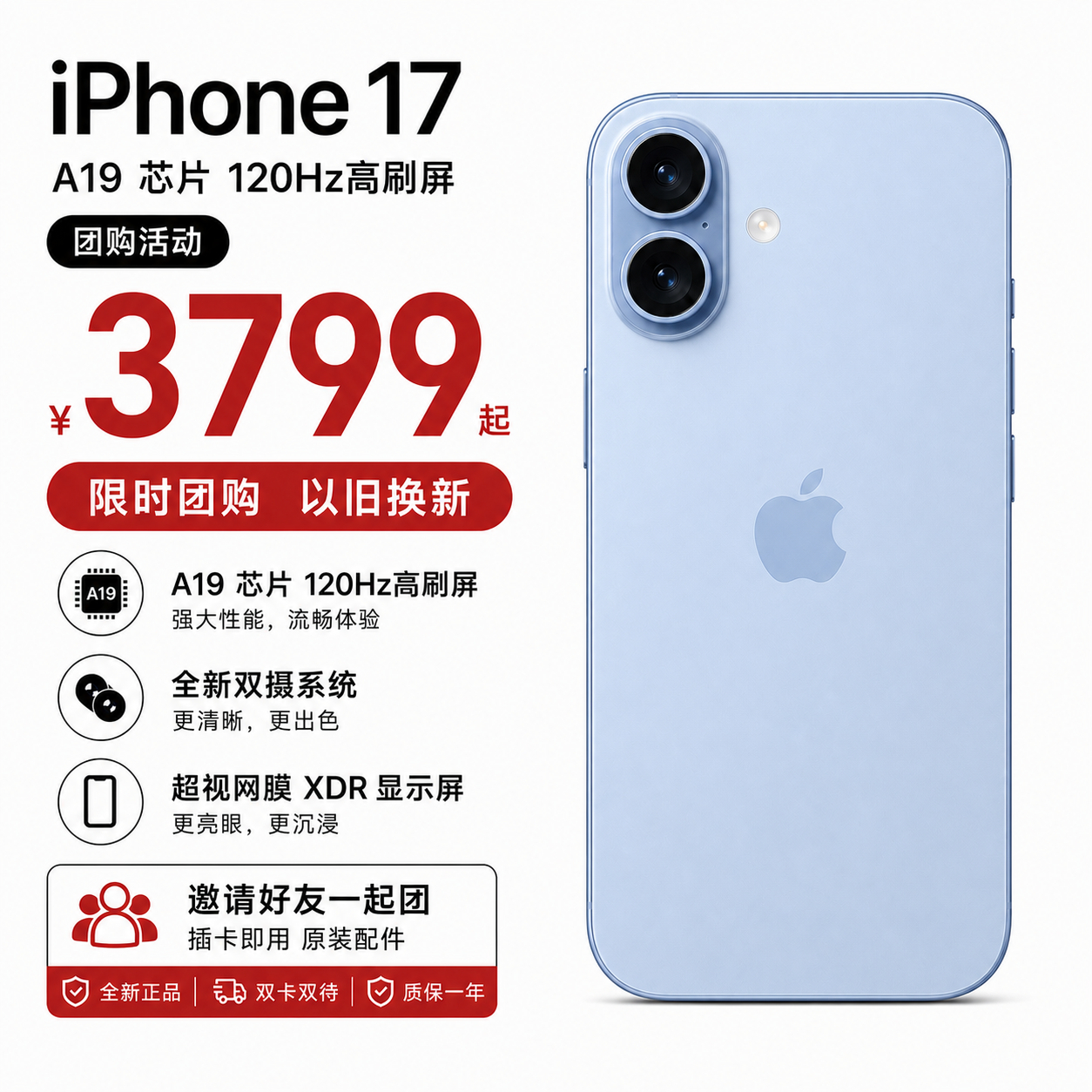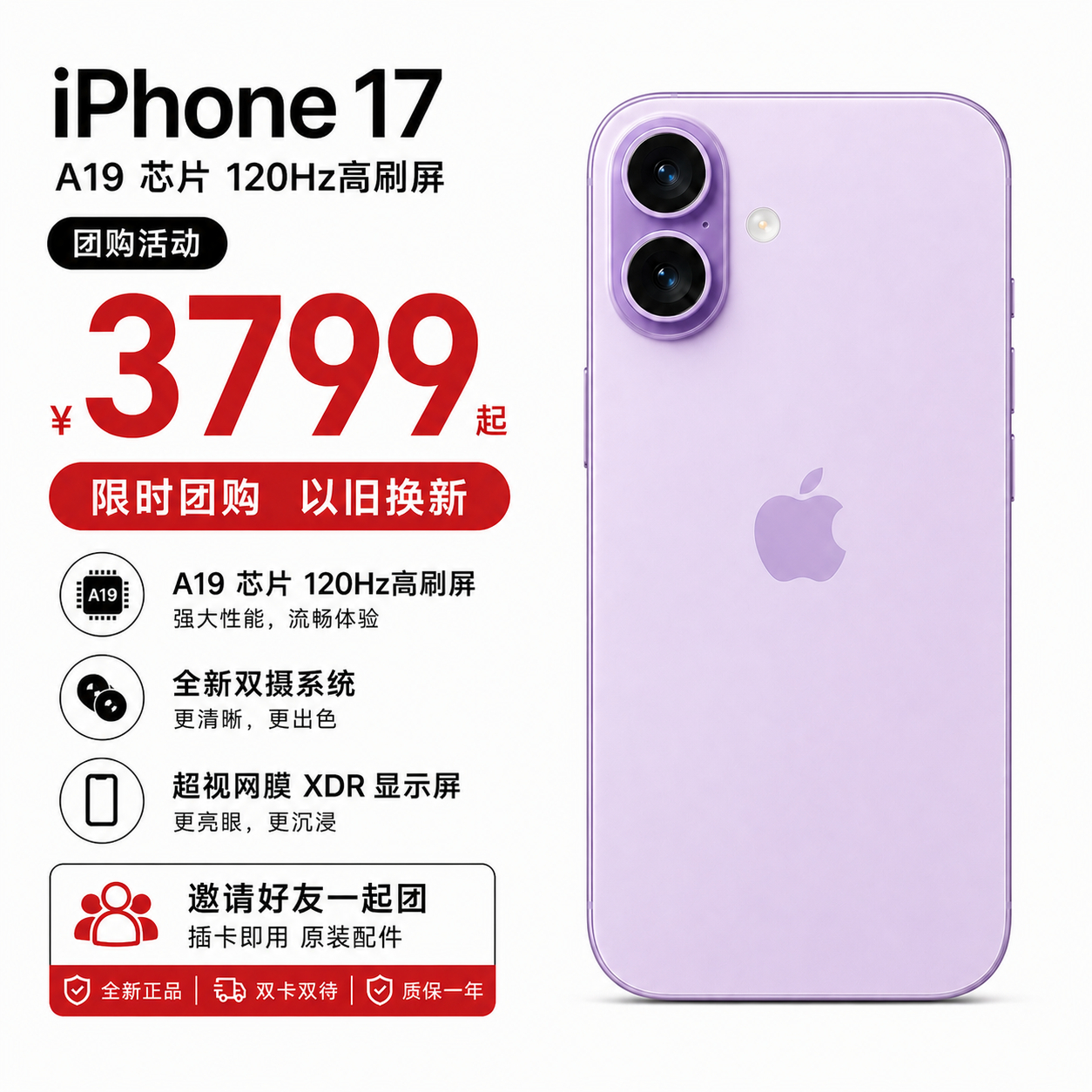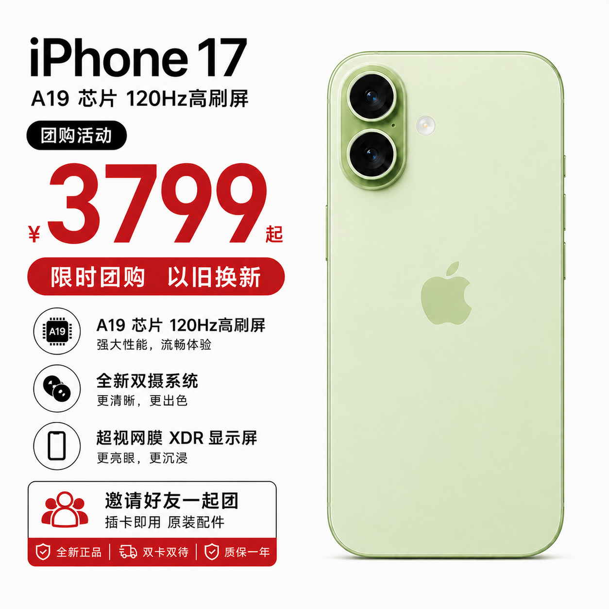 继续开iPhone 17 256G3799五一团,平正靓充iPhone 17 P
