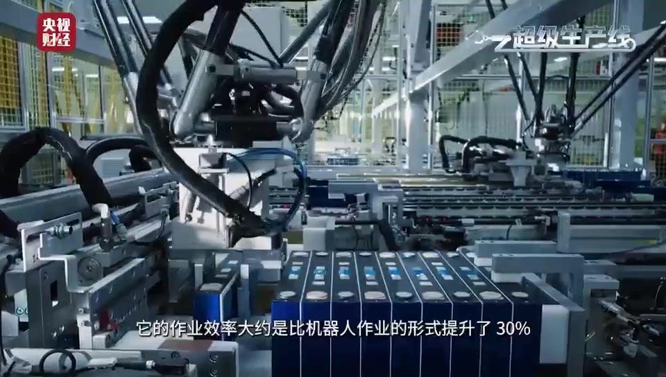 在电驱一体化工厂,央视财经主持人看到了一根铜线的完整旅程:铜线经过校直、去漆皮、2D/3D成型后,由四轴机械手全自动插入定子铁芯。现场人员打了个比方:“有点像在生日蛋糕上插蜡烛。”转子线自动化率很高,只有一名工人负责目视检查。整个电驱总成从定子、转子到最终下线,需要经过109道工序。控制器装配工位上,一台精度0.1毫米的视觉相机检测每一根PIN针是否缺失。产线人员介绍:“所有关键工序和参数都是可追溯的。”央视财经主持人了解到,整条产线节拍为60秒,相比人工线节省了多名操作人员。