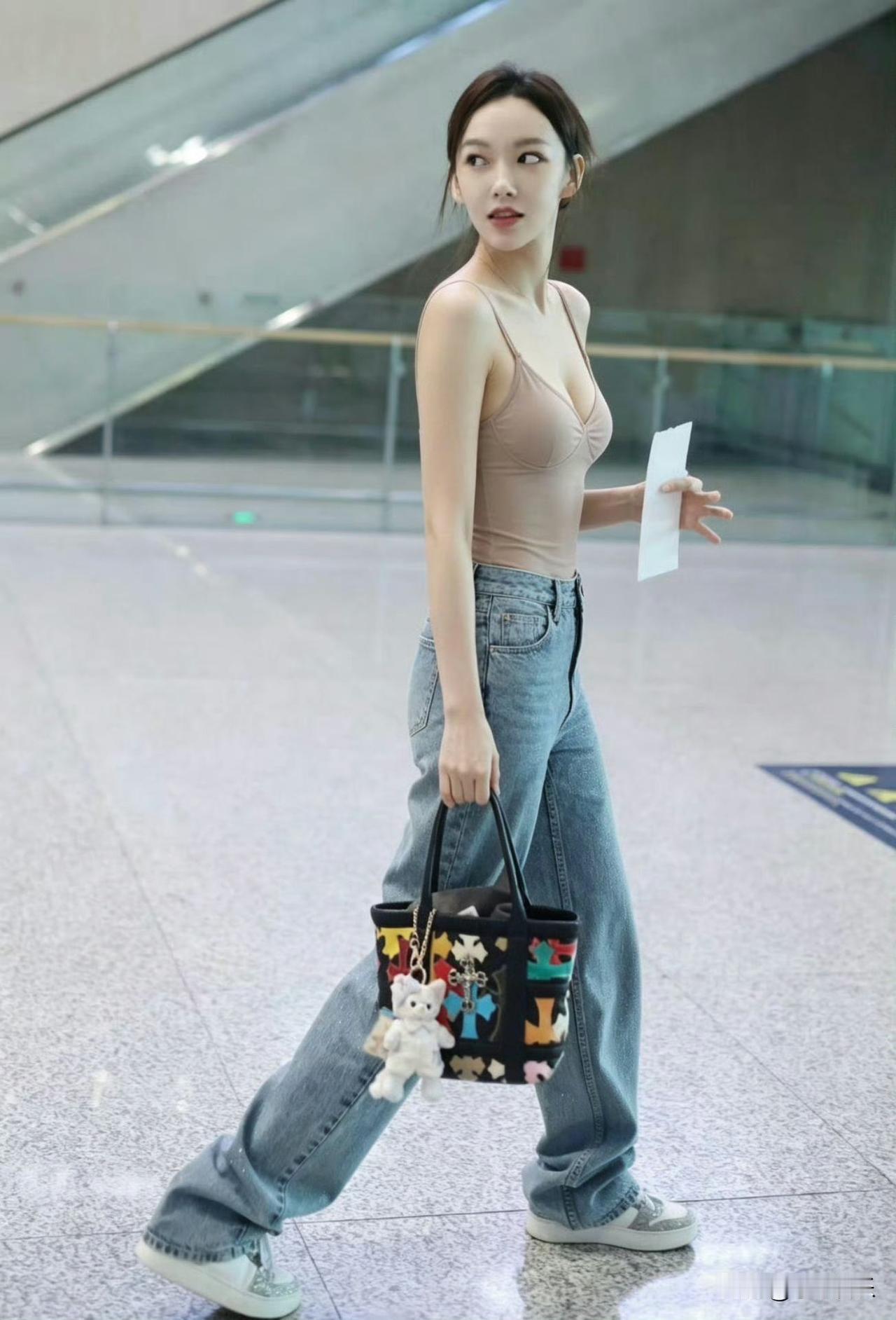 程潇这次机场吊带穿搭简直绝了!她不愧是“腿精”,吊带衫配长裤,那“女团腿”太抢镜