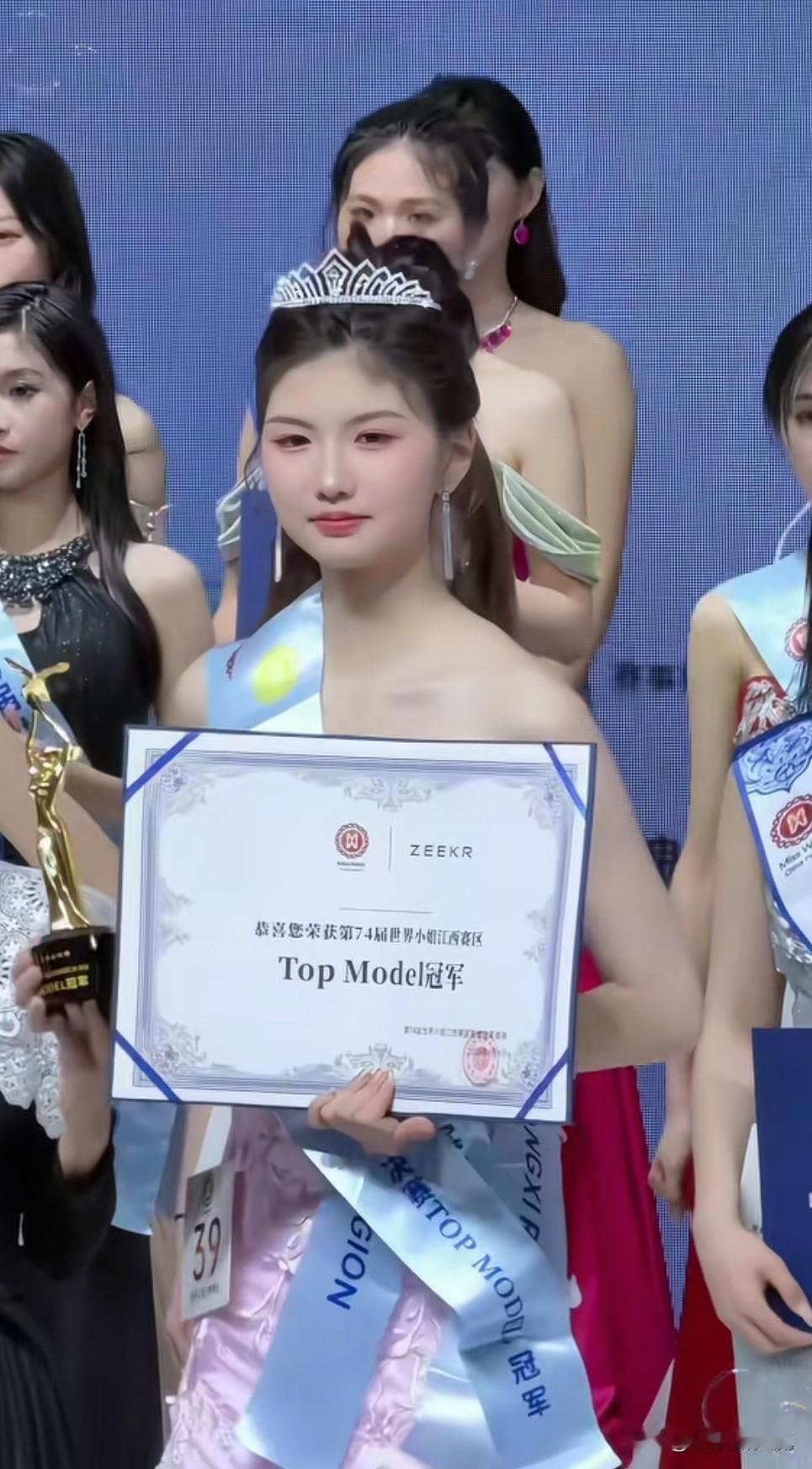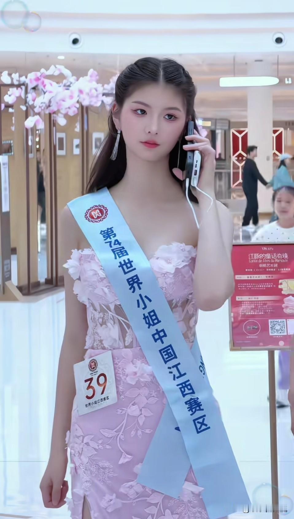 河南周口女孩王楚嘉,身高180厘米的甜美,获得了第74姐世界小姐江西赛区冠军,摄像机也记录下了她奔赴星光璀璨之途的模样,少女般灵动的线条,略显慵懒的眼神,手持电话的清冷,每一幕都定格了难忘的瞬间,娇小的脸庞虽然有些稚嫩,甚至和旁边的选手有些反差,却以独特魅力赢得了观众评委们认可。江西世界小姐