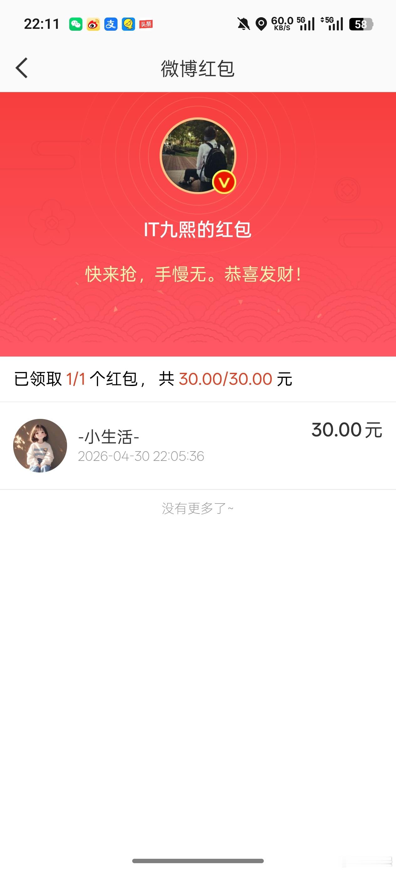 前二十名的红包也私发给大家了,记得签收