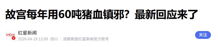 红星新闻 2026-04-19——故宫每年用60吨猪血镇邪?最新回应来了