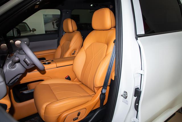 舒适配置的诚意,藏在每一个细节里。Nappa真皮座椅触感柔软细腻,同时兼具充足支撑性,久坐不累;前排与二排座椅均配备加热、通风与按摩功能,大六座布局的第三排座椅也搭载加热功能,无论寒冬酷暑,每一位乘客都能拥有舒适的乘坐体验。第二排配备可移动小桌板,移动办公、放置饮品、看平板追剧,轻松满足多样需求;丹麦B&O豪华音响系统搭配7.1.4声道,细腻的音质包裹整个座舱,每一次出行都像是一场听觉盛宴。车内搭载的智控地暖系统,可实现均匀升温,寒冬出行也能暖意融融;双开门车载冰箱更是实用贴心,可加热或冰镇饮品、冷藏保鲜水果,随时满足家人的饮食需求。