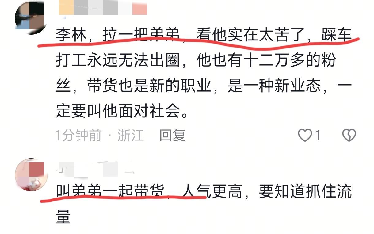 有很多粉丝劝李林下一次带货带上弟弟,这样流量更多,卖出的商品也更多。任何人都能带货,何况弟弟也有十几万粉丝,没有什么不好意思的。带几次货能改变一生,只有抓住流量不浪费,才能不枉粉丝们的喜欢。