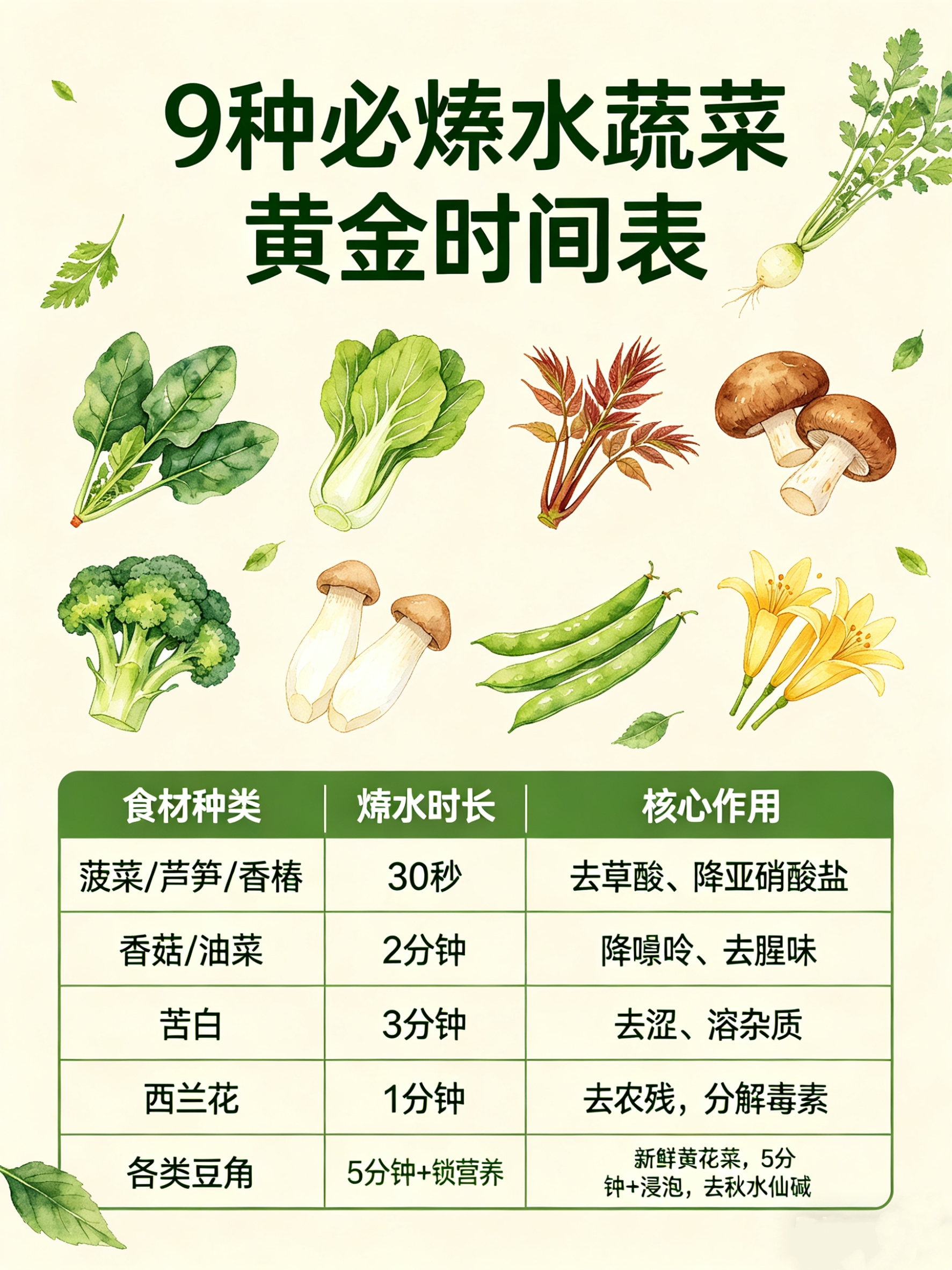 自家随手记·极简焯水口诀表:
