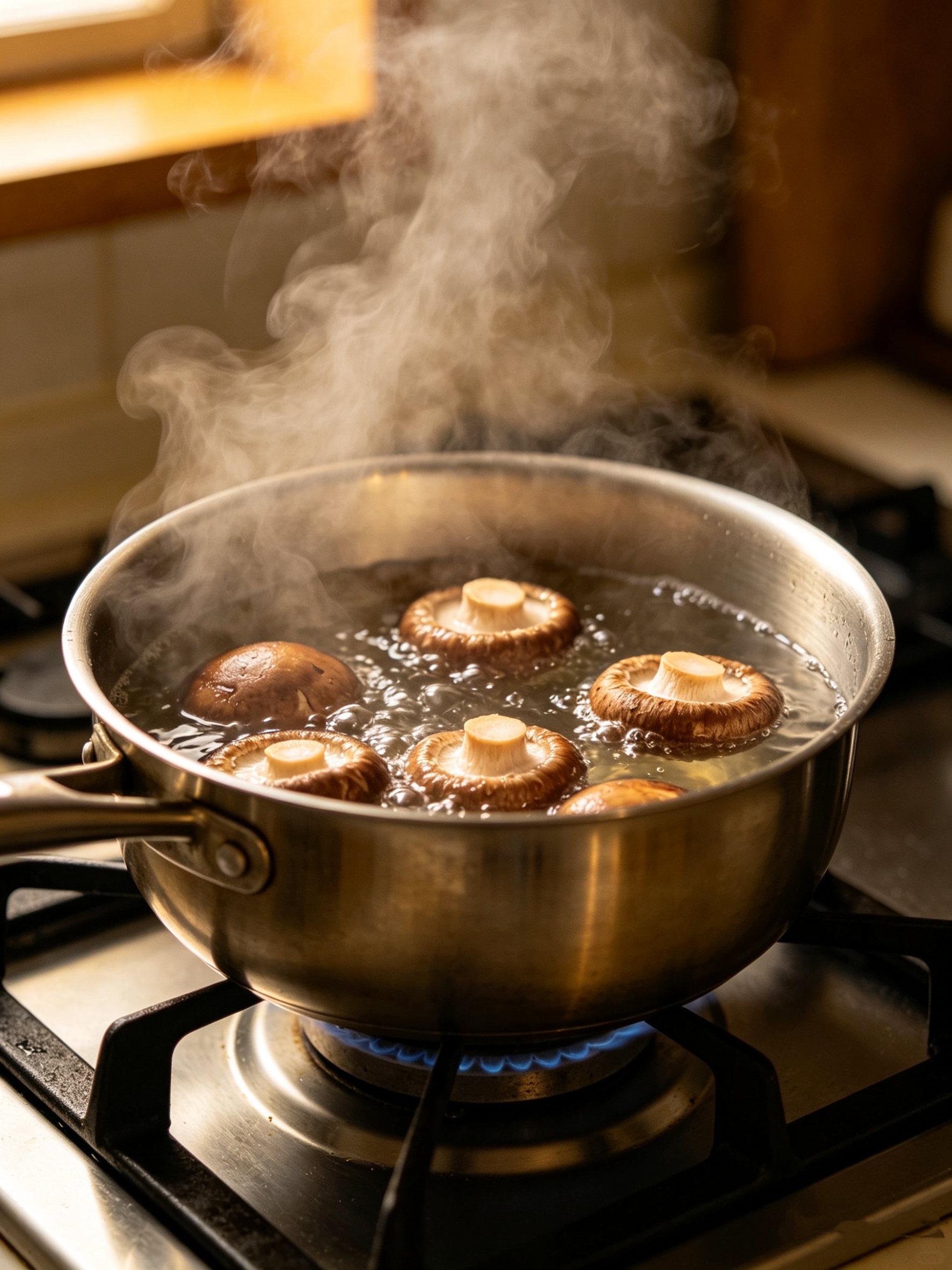 开水焯2分钟,能溶掉约3成可溶性嘌呤,顺带去掉香菇自带的土腥味和表面灰尘杂质,煲汤炒菜汤色清亮醇香,代谢不好的家人也能放心吃。