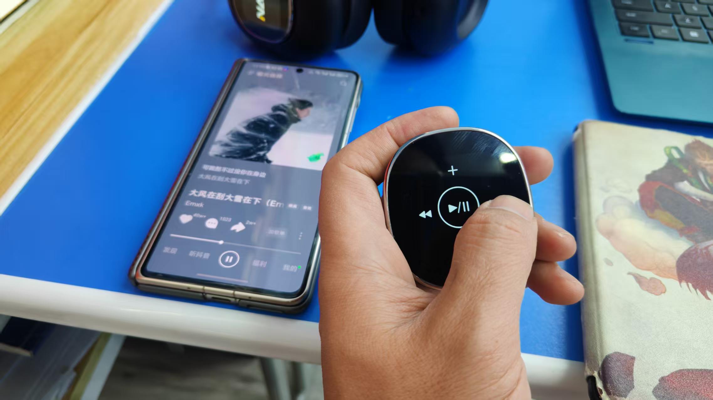 它让耳机第一次「有了表情」,音乐状态、交互反馈、个性表达,全部集中在这块「会动的屏」上,播放音乐时实时显示歌曲信息,切歌、调音量时屏幕同步反馈,每一次操作都有仪式感。同时解锁 5 大操控功能,支持音乐 APP 遥控器、拍照遥控器、视频 APP 遥控器、实时显示、双屏联动:连接手机后不用解锁,轻触屏幕就能切歌、调音量、切换降噪 / 通透模式,长按开关机、连接蓝牙;自拍时不用举着手机找角度,低头轻触就触发快门,拍出来的照片自然不僵硬;刷短视频更爽,左右滑动切换视频,双击点赞,通勤躺平、户外散步时彻底解放双手,懒人直接狂喜。