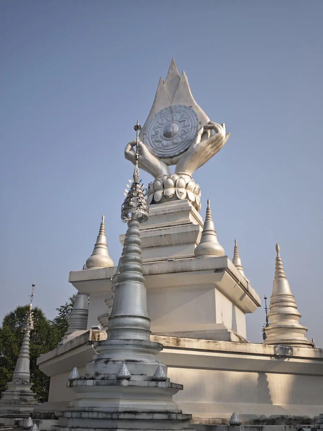 银塔的设计融合了傣族与佛教文化元素,塔身由80个小塔构成。但和大金塔最大的不同是——银塔是实心的,无法入内参观。这也让它多了一份神秘感和距离感,仿佛一位圣洁的女神,只可远观,让人不敢轻易靠近。