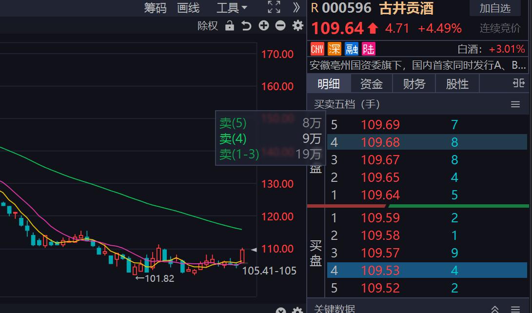 5. 古井贡酒当日涨幅:+4.51%,现价 109.66 元