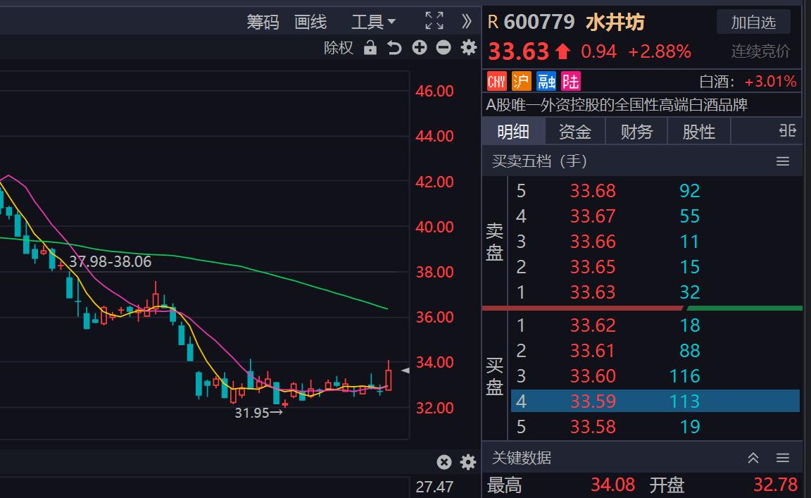 9. 水井坊当日涨幅:+3.06%,现价 33.69 元