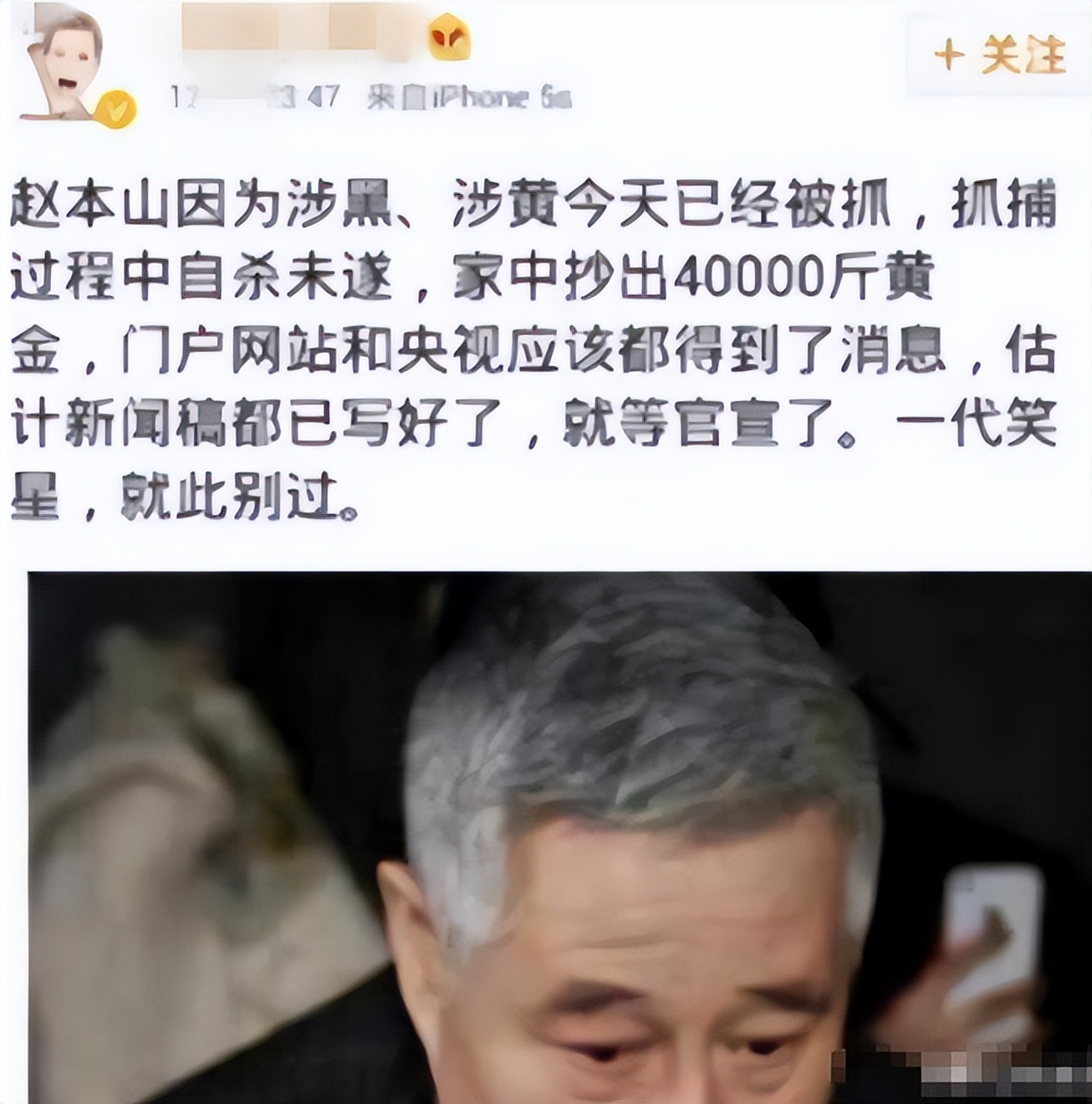 14年赵老师演了一部影视作品,里面有一句台词说的有关于20吨黄金,结果就被一些有心人说成了“赵本山被抓,家中抄出20吨黄金”,现在造谣真是没有成本了。