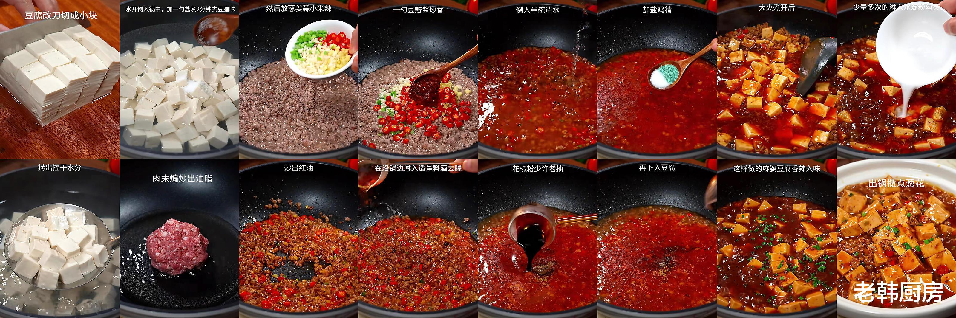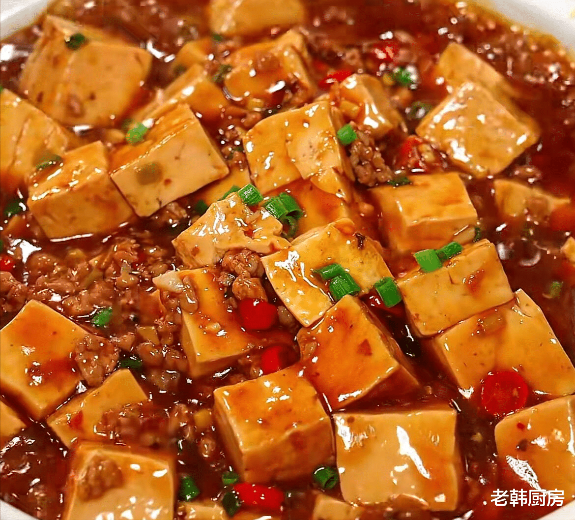 1️⃣ 嫩豆腐切小块,放入加了盐、少许老抽的热水中焯2分钟,捞出沥干(豆腐不易碎还入味)2️⃣ 锅中热油,下肉末炒至变色,加蒜末、小米辣、1勺豆瓣酱炒出红油3️⃣ 加1碗清水,放入豆腐,加生抽、老抽、蚝油、白糖,轻轻推动豆腐,小火煮3分钟4️⃣ 淋入淀粉水勾芡,煮至汤汁浓稠,撒上花椒粉和葱花,出锅!