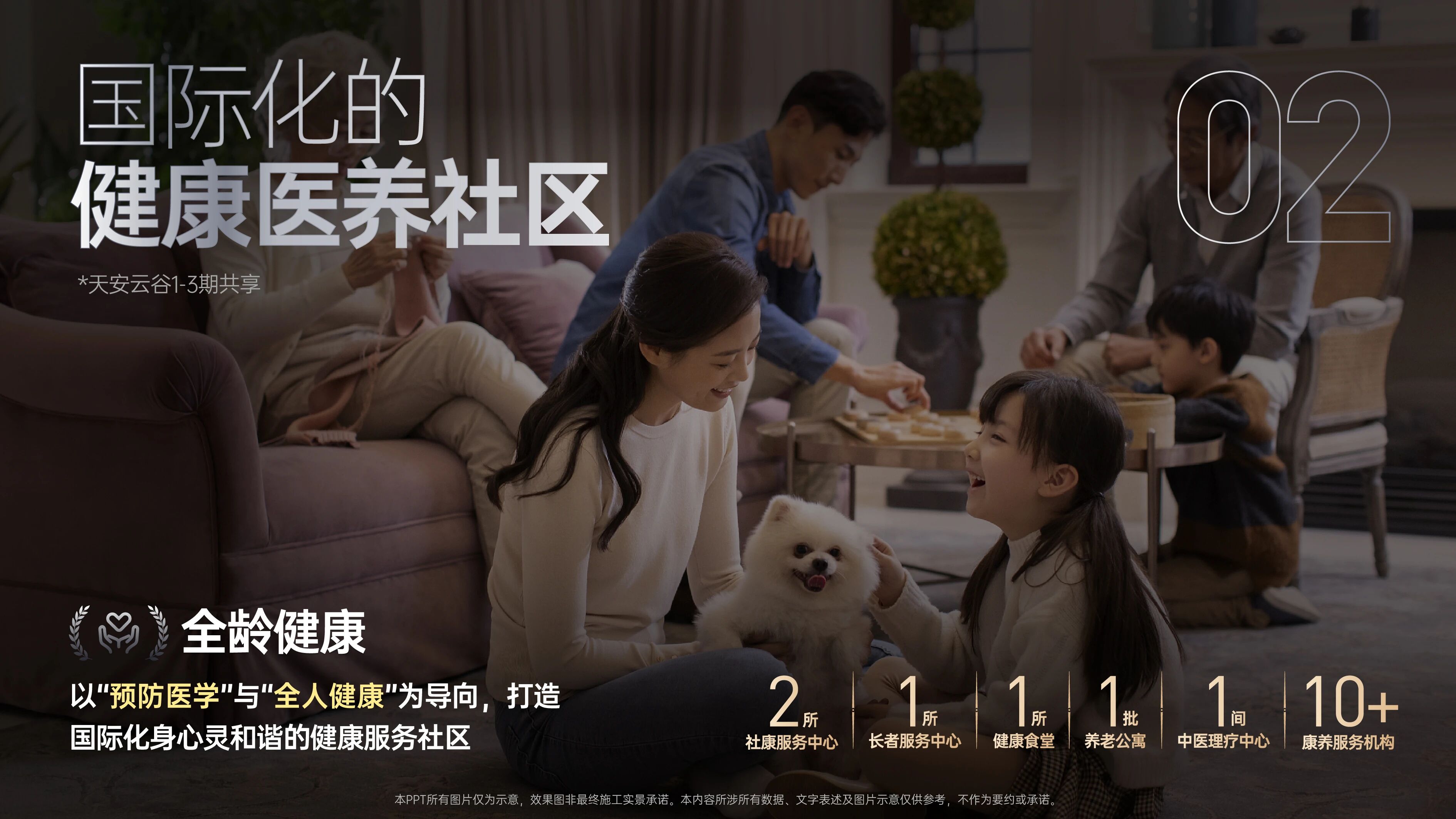 另外,天安云谷自身也以“预防医学”与“全人健康”为导向,打造国际化全龄健康医养社区,实现从日常健康管理、应急救护到诊疗康复、养老照护的全生命周期守护。