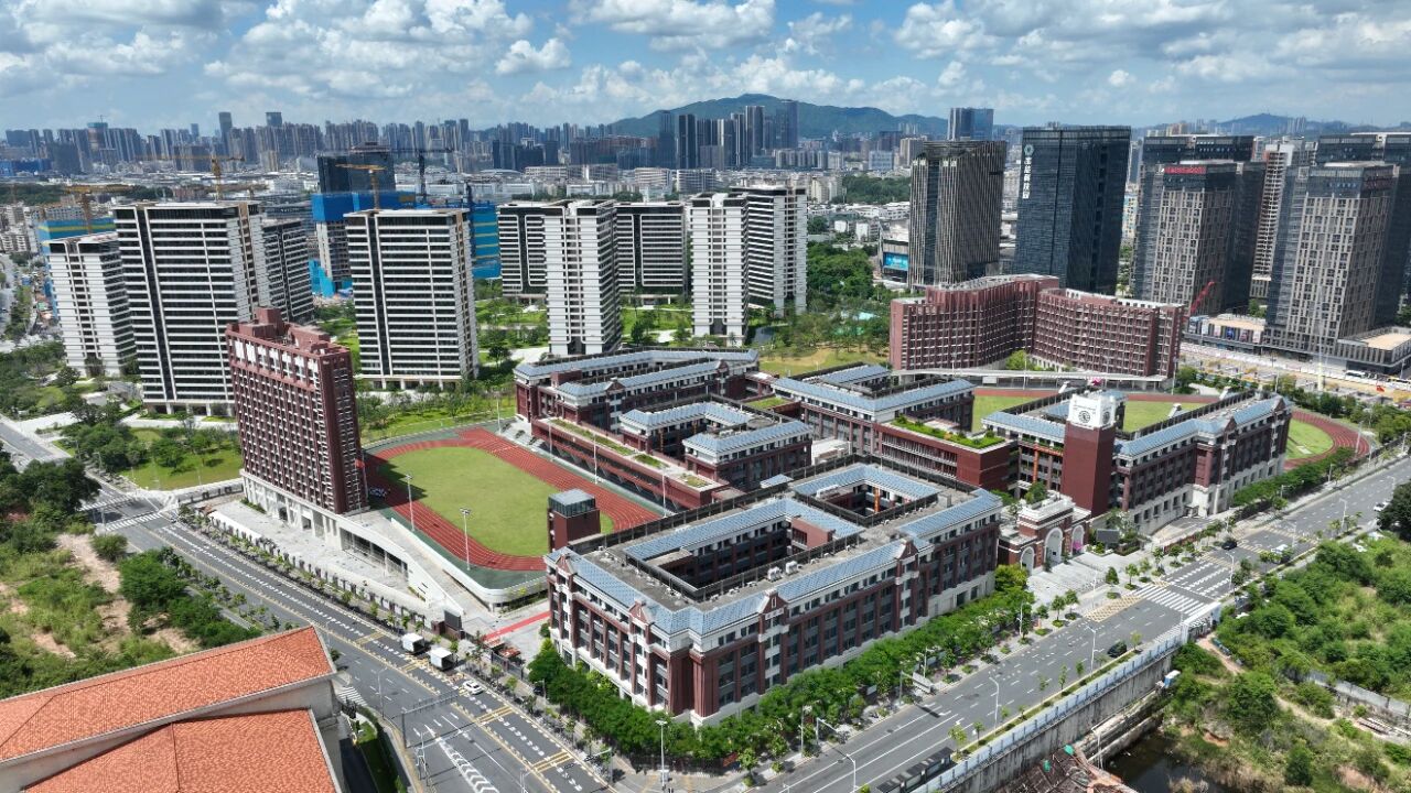 •广东实验中学深圳学校(省实深圳):深圳市教育局直属公办十二年一贯制学校,学校占地7万㎡,总建面13万㎡,规划96班(小学36、初中18、高中42),学位4620个;省实本部派驻管理团队,高中部专任教师155名,副高以上占32.9%,含正高3名、特级4名;2025年高考特控率约50%,本科率100%,2024年入学积分为95.6分,2025年入学积分为98.6分;