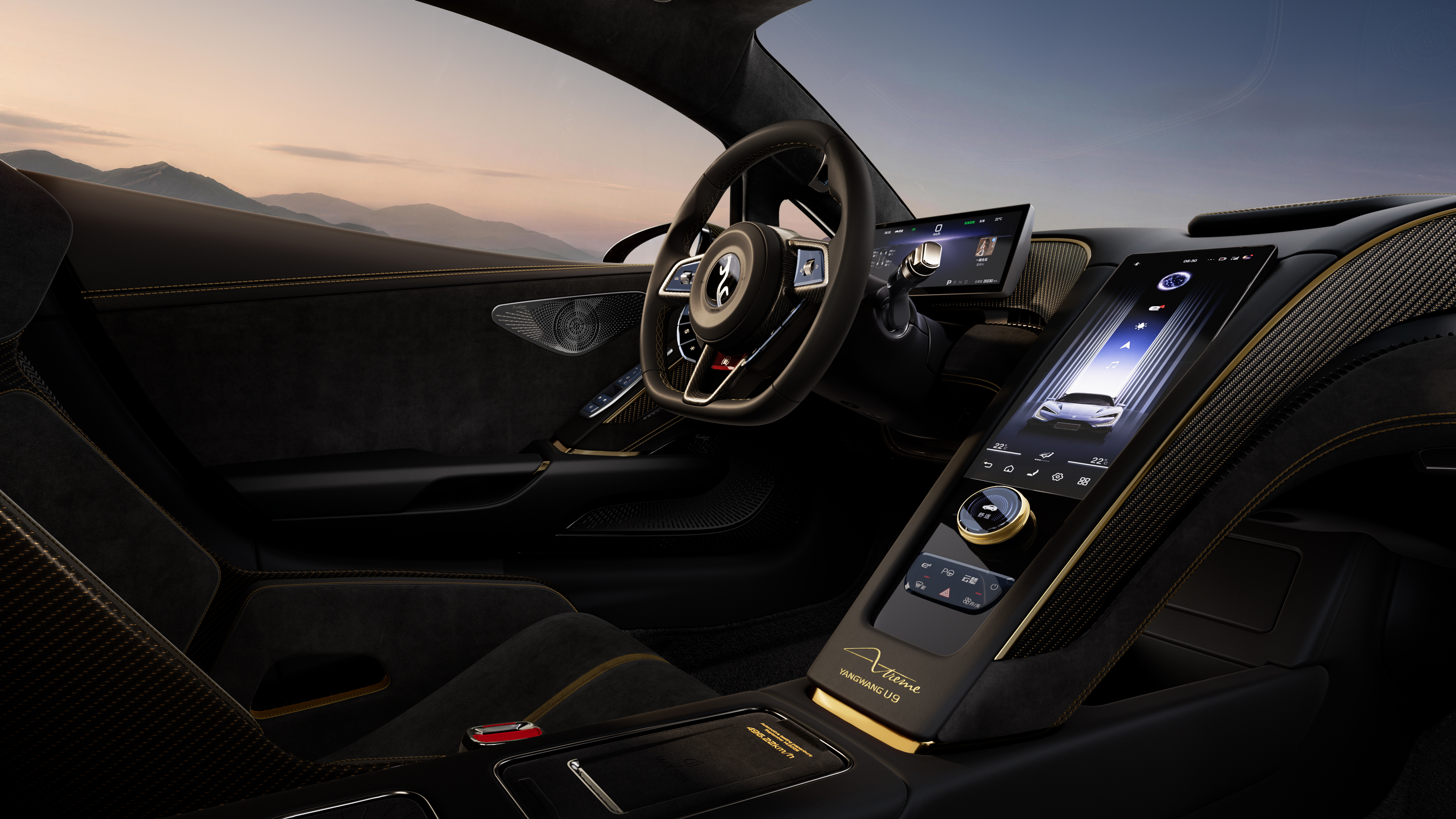 “破晓时刻”车身漆面中融入了微米级超细金粉,经多层清漆层层锁固,不同光线下,漆面会完美复刻朝阳穿透云层的流光溢彩。哑光金部分使用了中国传统非遗大漆的打磨工艺,将东方独有的温润质感,刻入每一寸型面。非遗工艺承载着中国人对顶级审美、极致细节的追求,深耕非遗不是为了简单的设计元素堆砌,而是寻找东方审美技艺与全球30位顶尖藏家的价值共鸣。