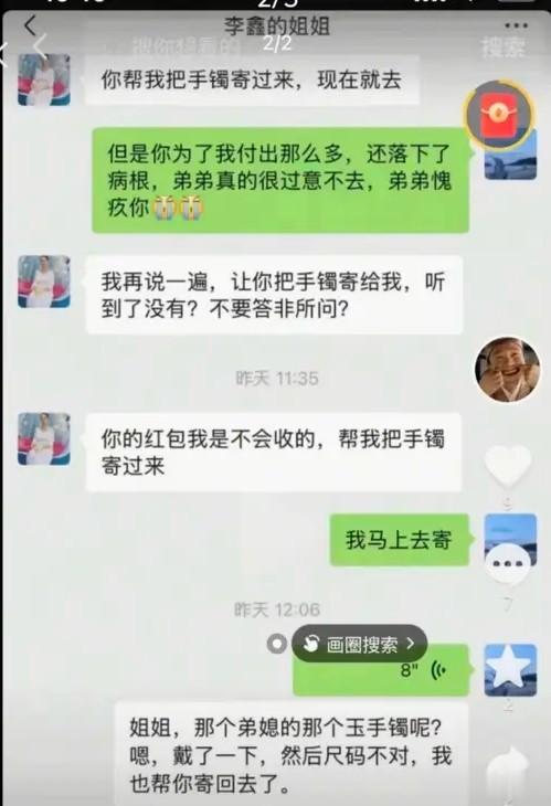 李鑫或已退回金镯子。昨天晚上,李林的评论区有疑似姐弟俩对话的截图被很多人关注。