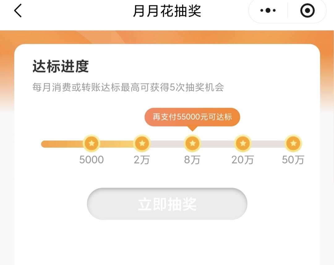 当月累计支付满五千元、满两万元、八万元、20万元、50万元,分别可抽1次,最多可抽5次。