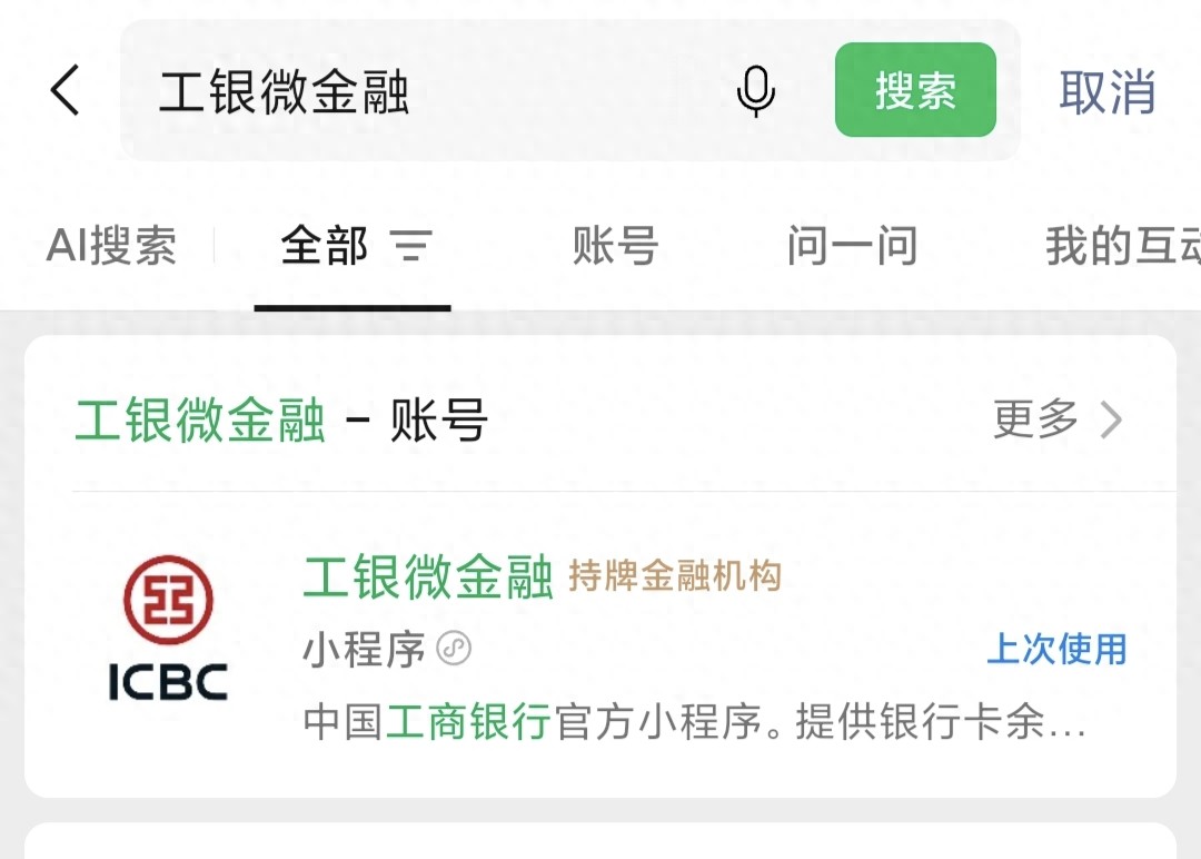微信搜索工银微金融小程序