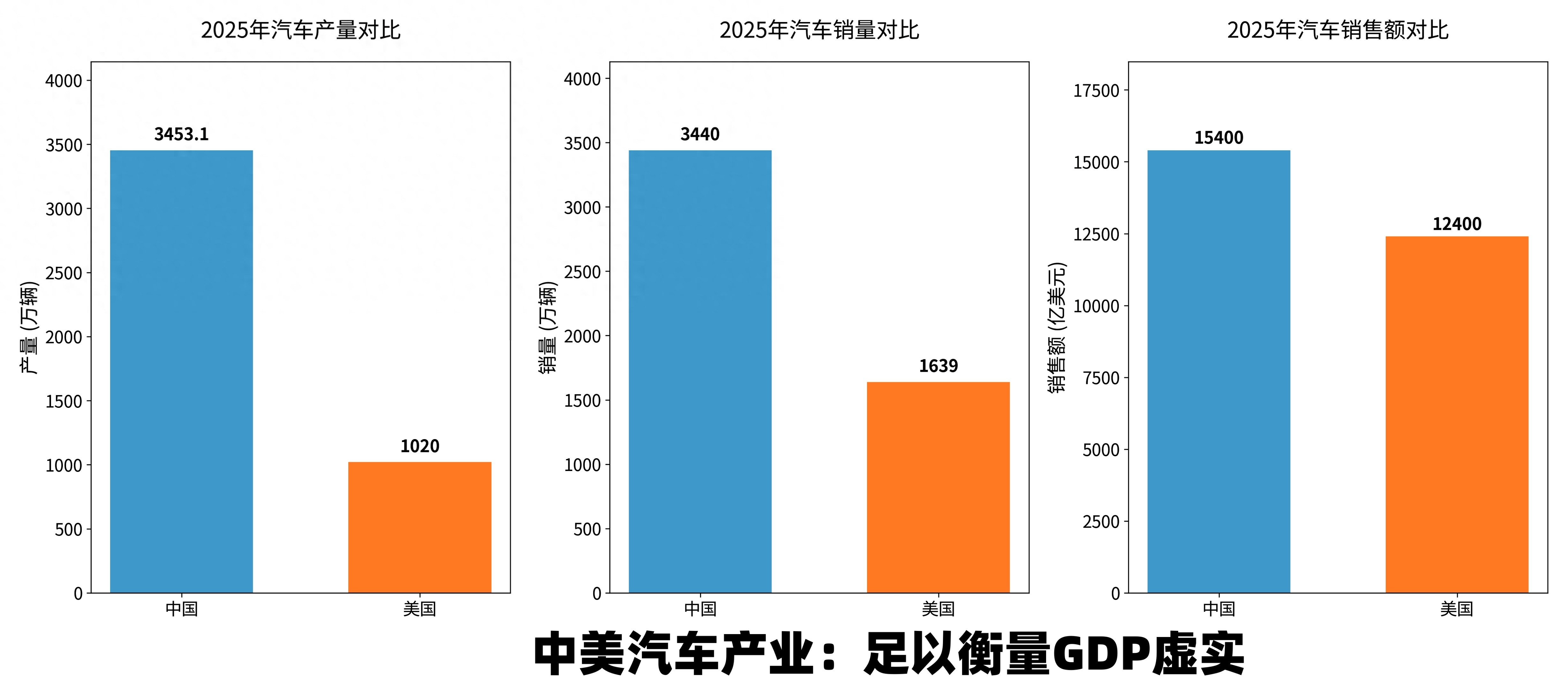 仅仅是对比中美汽车产业一项就可以得出结论,美国的GDP的虚高有些吓人。