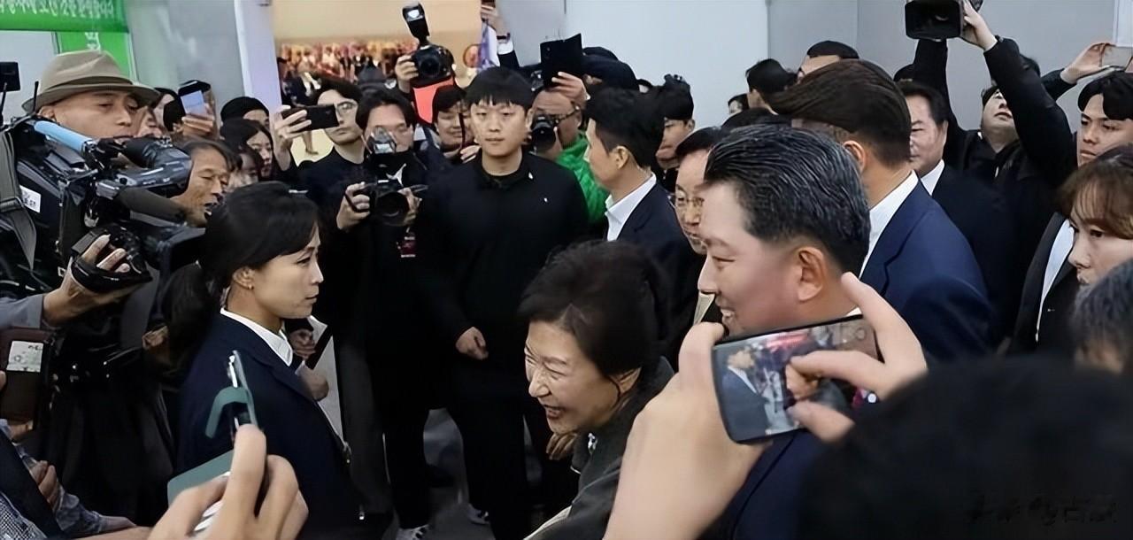 当天,朴槿惠身边跟着一支规模不小的保镖团队,其中一位年轻的女保镖格外引人注目。这位女保镖穿深蓝色修身西装,内搭白色衬衫,梳着干净的马尾辫,全程紧贴朴槿惠左右,眼神始终保持高度警觉,不时环视四周。她的职业素养和飒爽气质在人群中极为突出,以至于被媒体和网友单独截图讨论,不少人称赞她"又美又飒"。现场照片中甚至可以看到朴槿惠身旁的一位中年男性随行人员忍不住频频侧目看这位女保镖,画面被网友截下来之后,成了当天互联网上流传最广的花絮之一。
