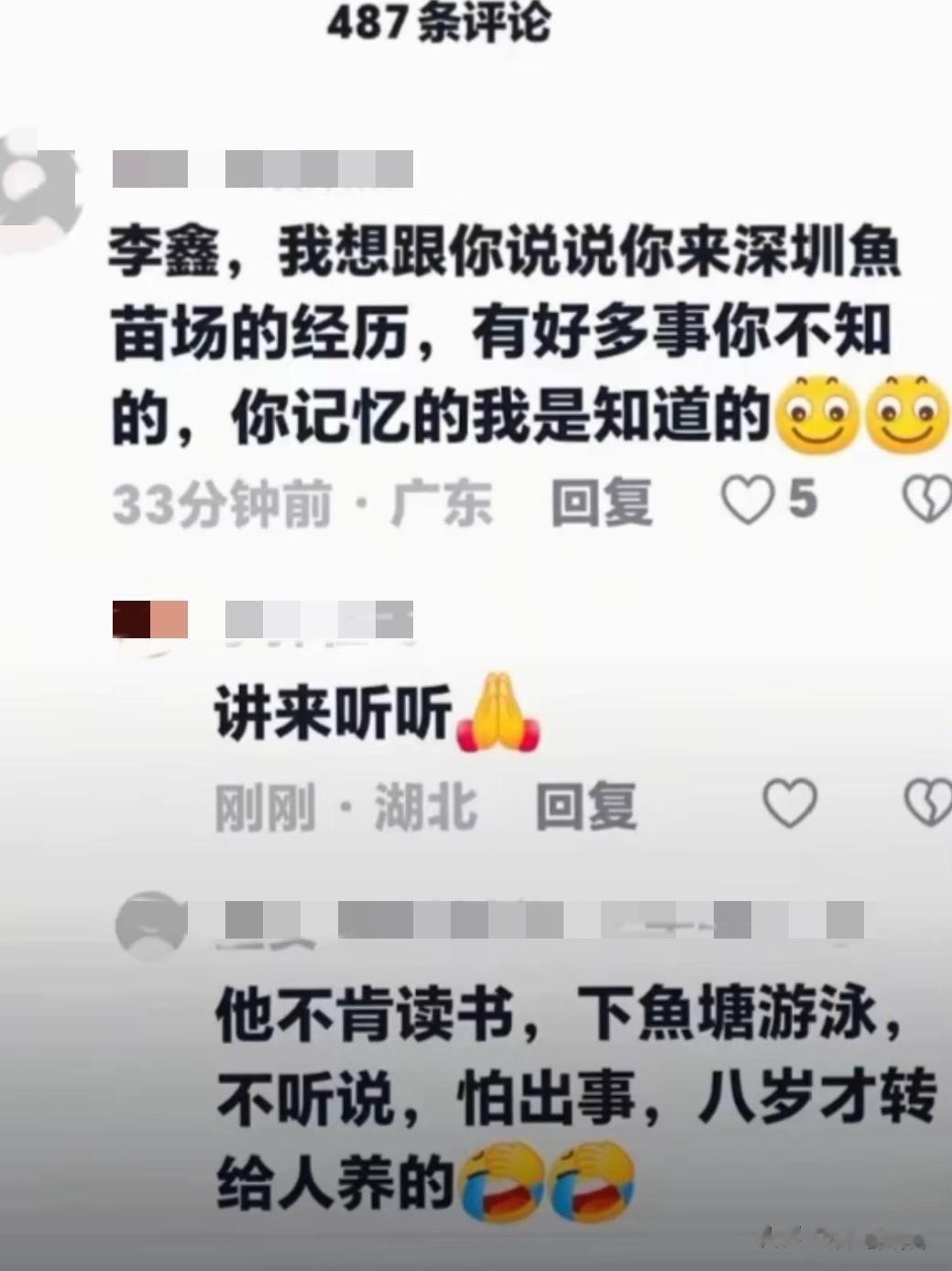 更有甚者,有当地的知情人爆料说李鑫当年是首先到了深圳鱼苗场,因为不肯读书又过于调皮捣蛋,才被转到了现在的养家。