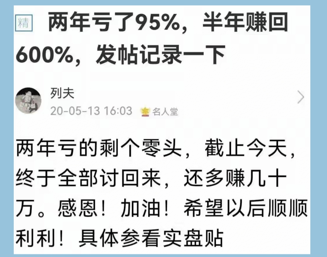 早期炒股曾连续两年亏损,账户资金亏掉95%,几乎破产。